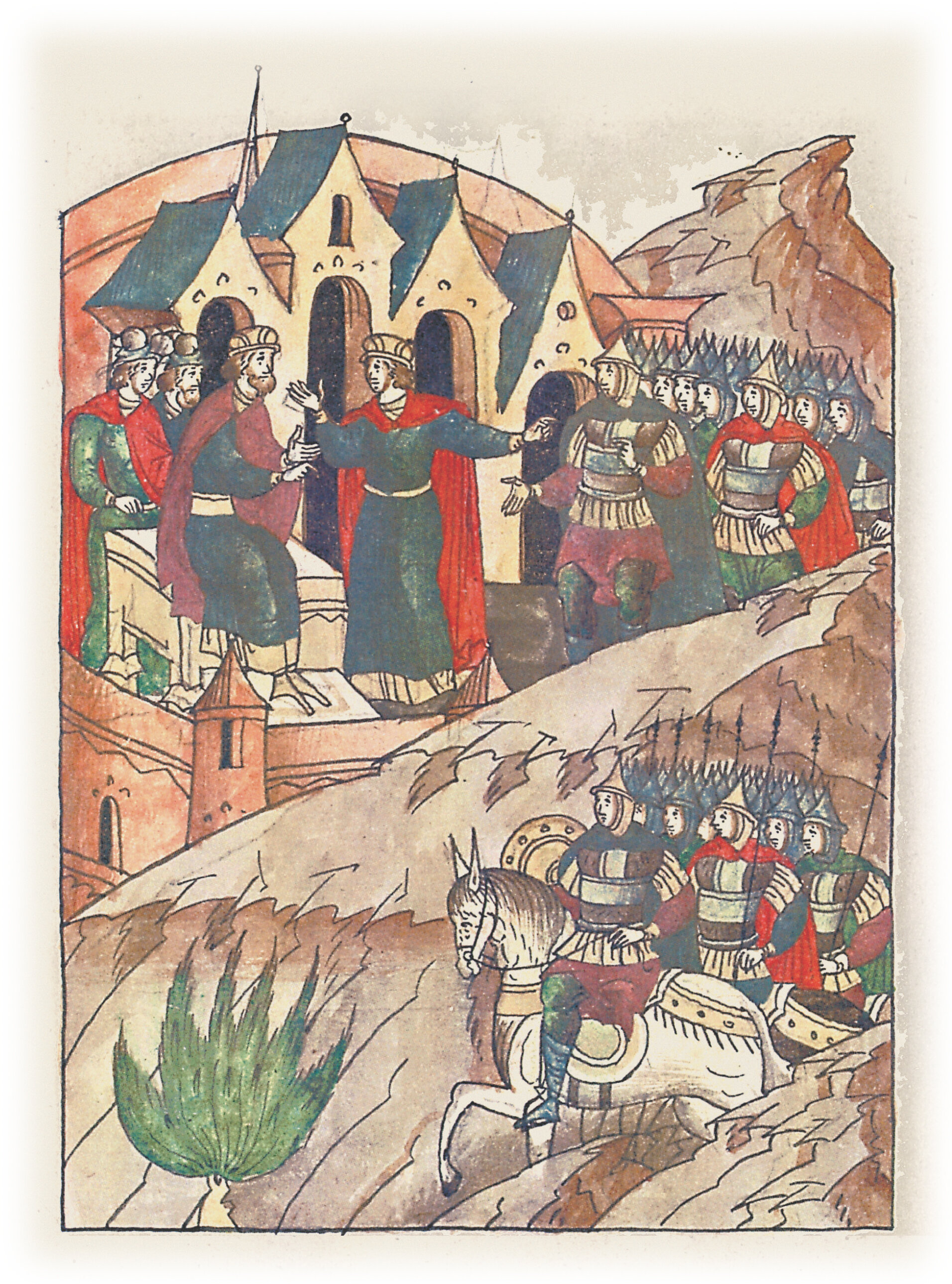 Ругодивские посадники Яким и Захар приезжают в Москву. Воеводы царя Ивана Васильевича Алексей Адашев и Иван Михайлов сообщают им, что государь пожалует их, если сдадут его воеводам помимо Ругодива Вышгород.