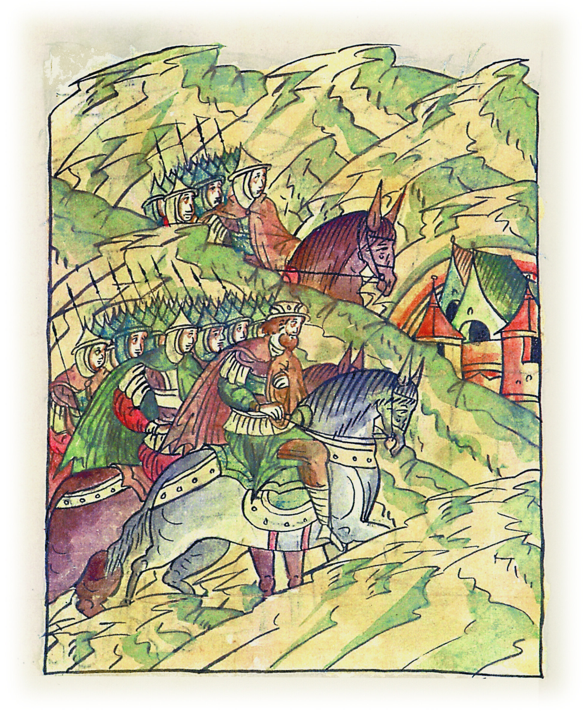 Воеводы царя Ивана Васильевича, разделившись, идут в погоню за царем Емгурчеем.