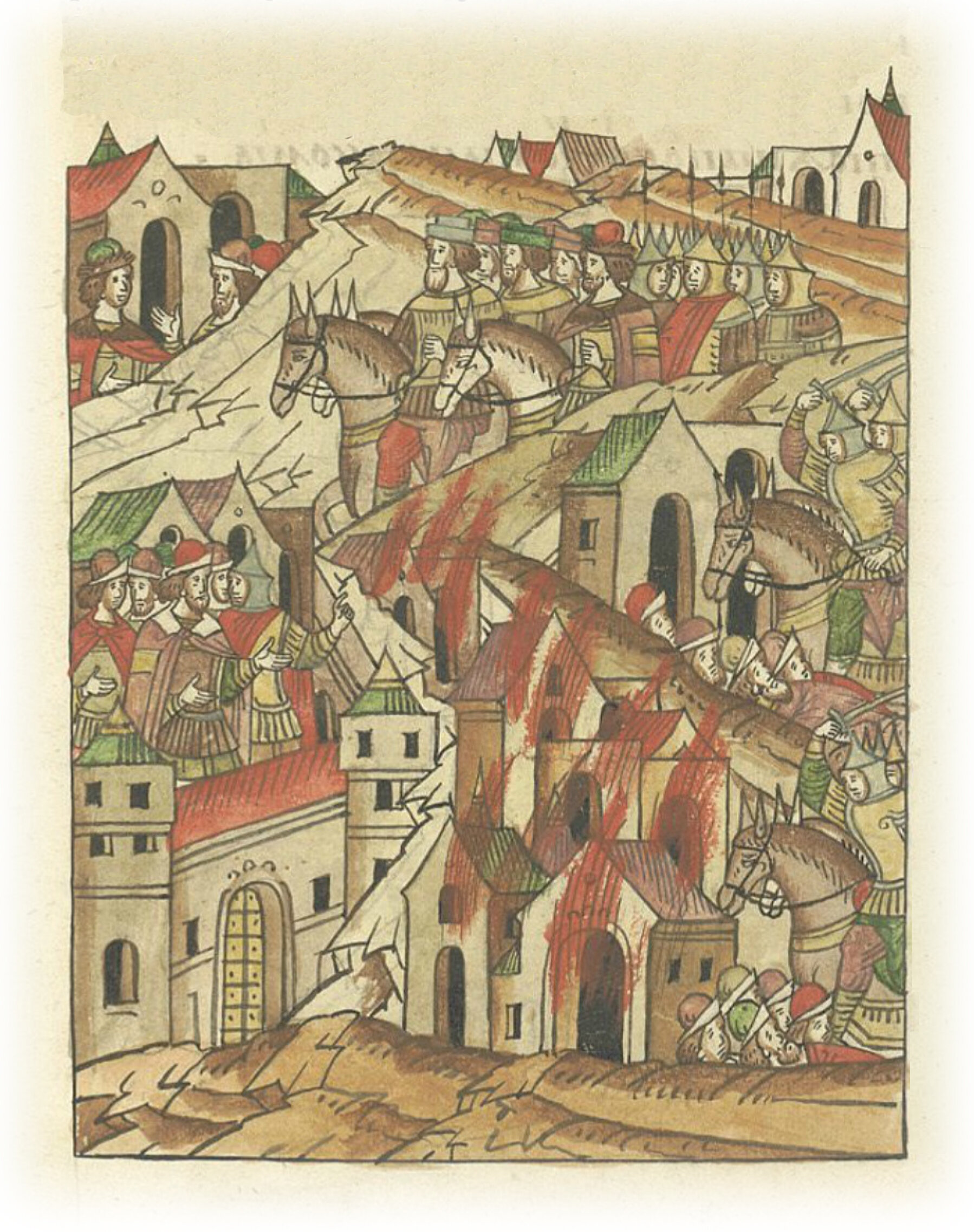 Пришел в ту зиму, в Филиппов пост, месяца ноября в 25 день, великий князь Литовский Ольгерд Гедиминович с большим войском на великого князя Дмитрия Ивановича вместе со своим братом Кейстутом Гедиминовичем и с литовскими князьями, с князем Михаилом Александровичем Тверским и князем Святославом Ивановичем Смоленским с их войсками. Прежде всего войско подошло к Волоку, весь посад сожгли, захватили много пленных, но самого города не взяли, простояв три дня под городом Волоком.