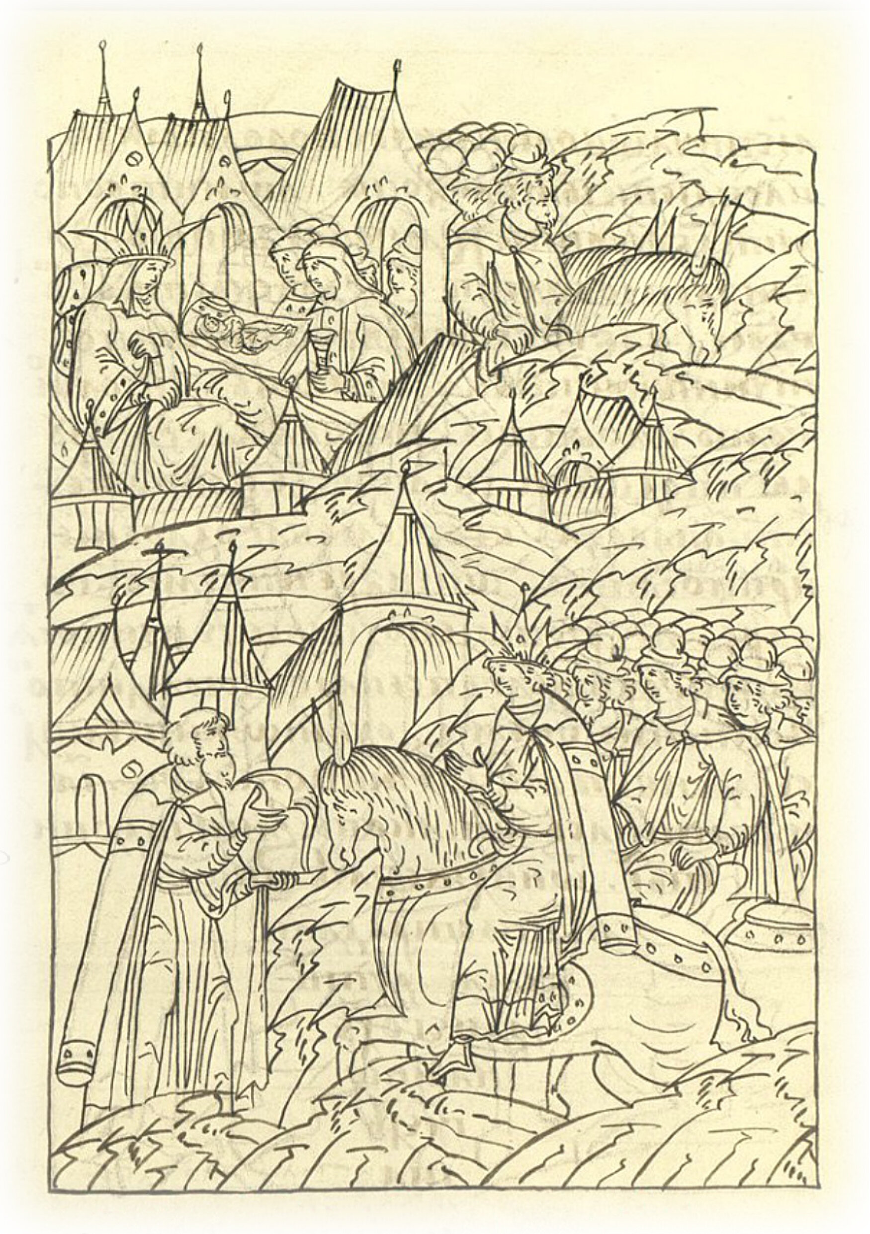 Языки говорят воеводам царя Ивана Васильевича, что магистр окопался большим рвом вокруг города Рындола, бьет из пушек и пищалей и приступает к Рындолу.