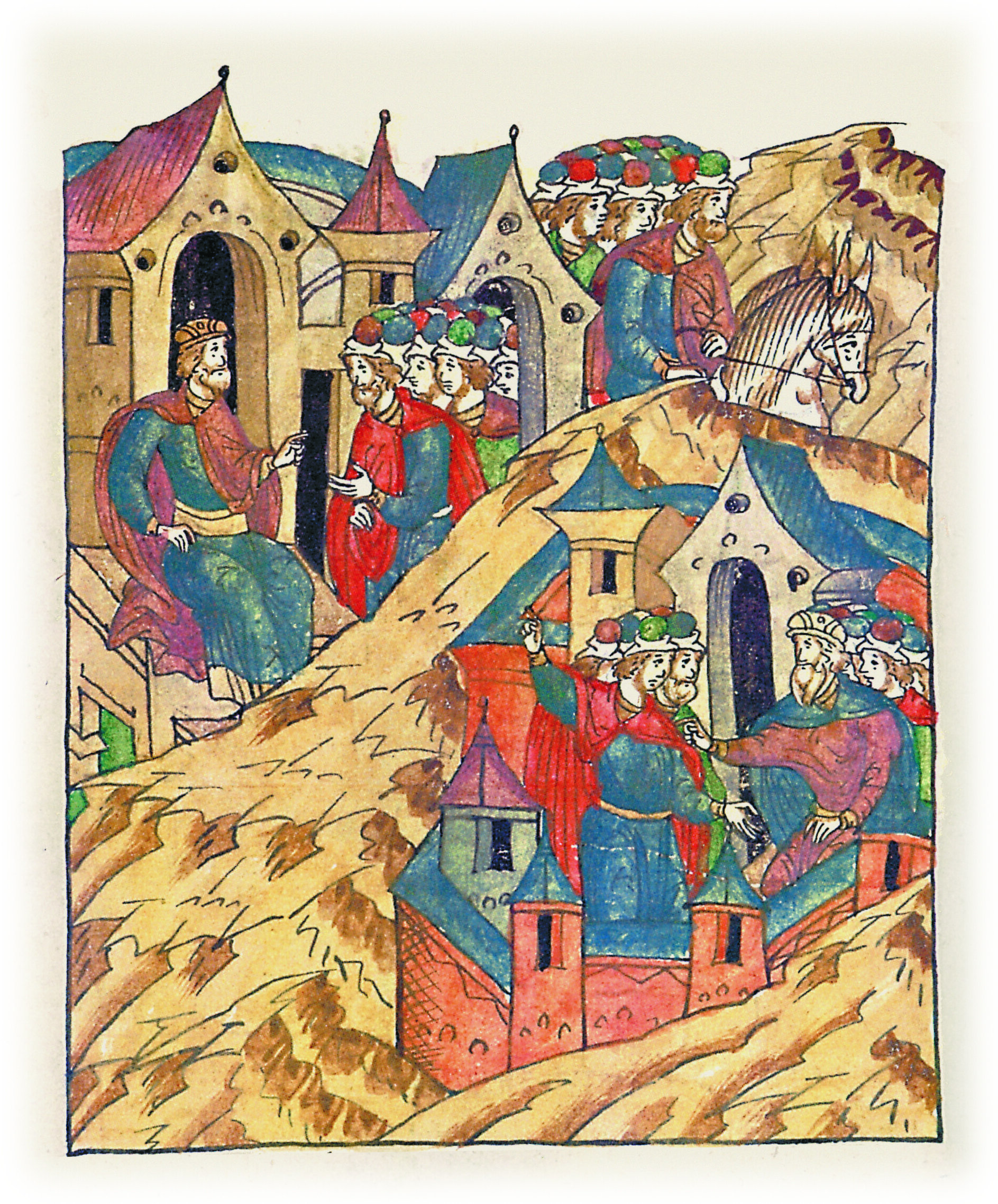 Ругодивские посадники Яким и Захар приезжают в Москву. Воеводы царя Ивана Васильевича Алексей Адашев и Иван Михайлов сообщают им, что государь пожалует их, если сдадут его воеводам помимо Ругодива Вышгород.