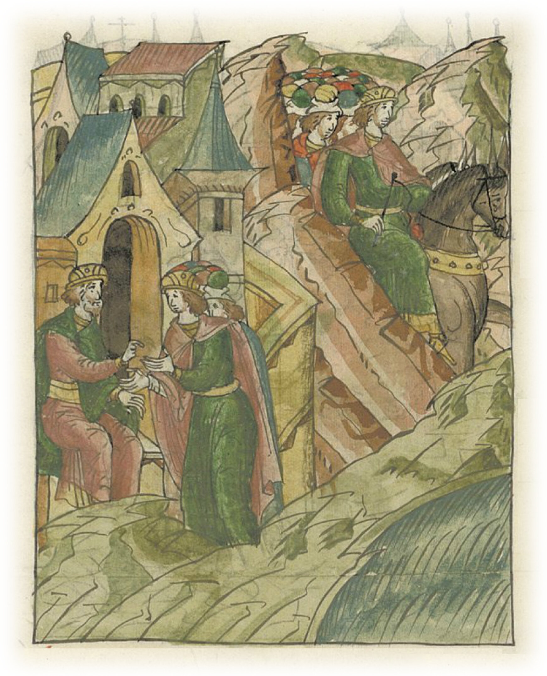 Ругодивские посадники Яким и Захар приезжают в Москву. Воеводы царя Ивана Васильевича Алексей Адашев и Иван Михайлов сообщают им, что государь пожалует их, если сдадут его воеводам помимо Ругодива Вышгород.