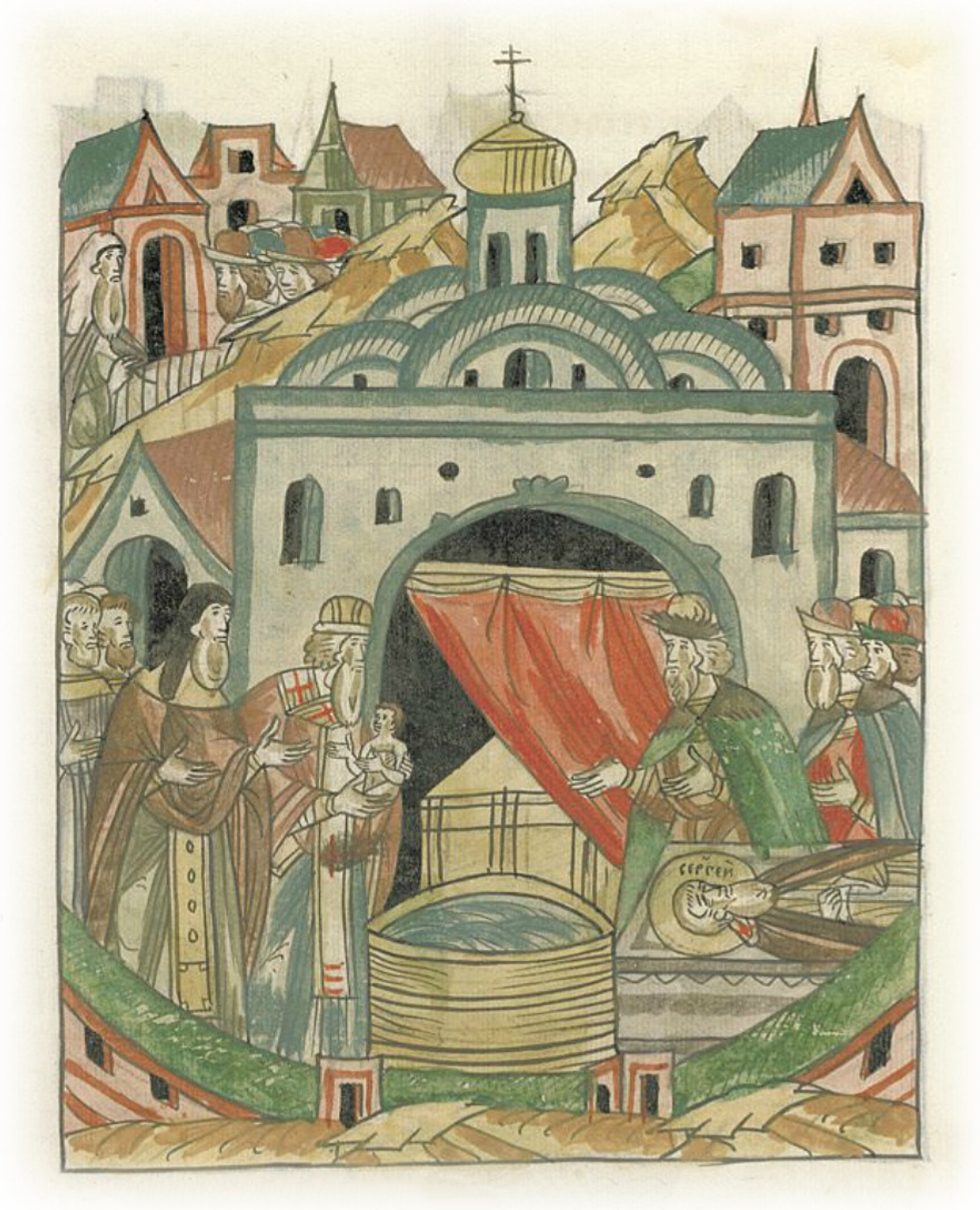 Чудесное зачатие и рождение великого князя Василия Ивановича. Крещение Василия Ивановича у Троицы в Сергиевом монастыре.