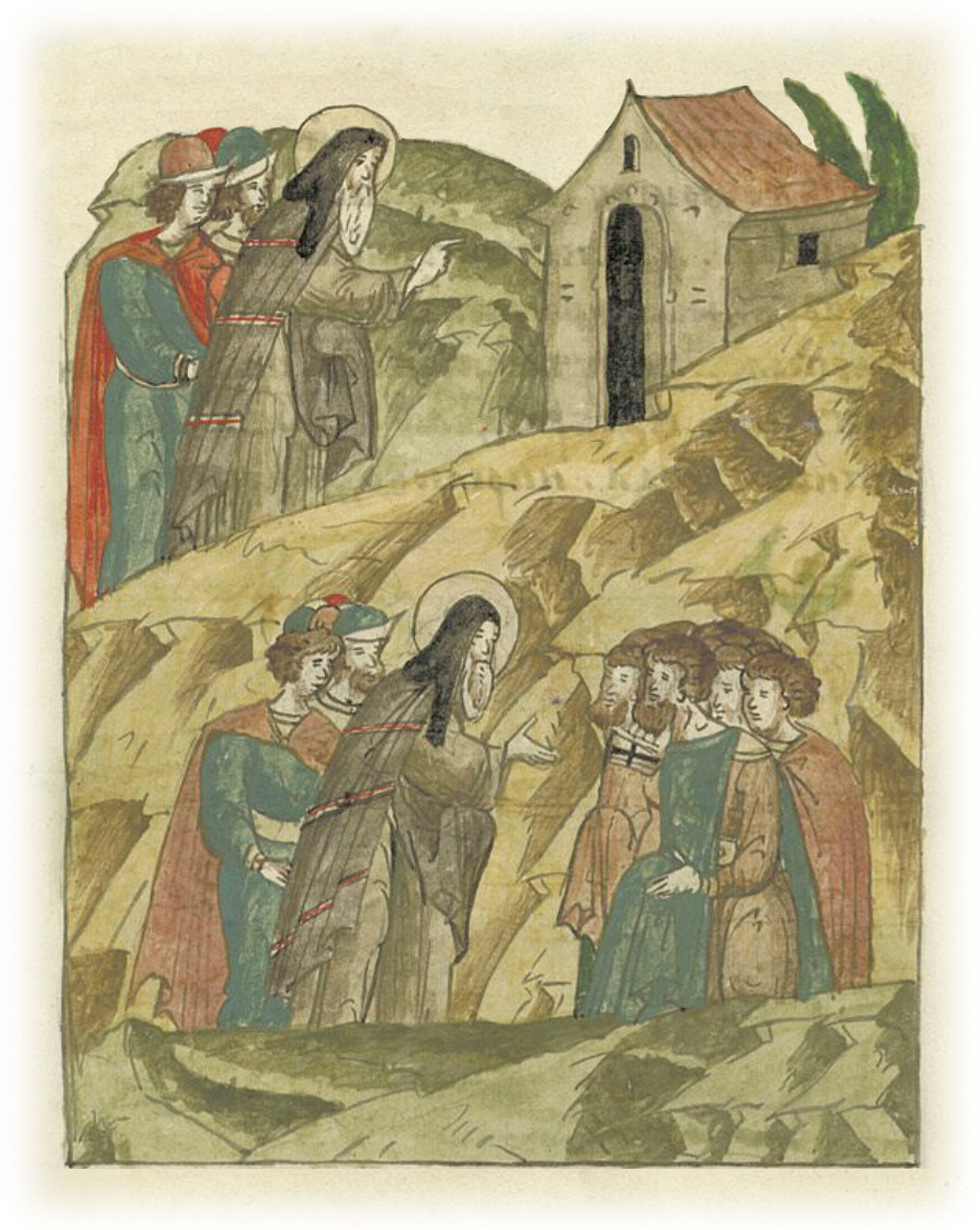 живущим же в монастырях передавал законы, которым научился от святых отцов. Избегал святой Савва людской славы, желая в чужих странах окончить свою земную жизнь, и, созвав епископов и всех, обладавших властью, многому научил их,