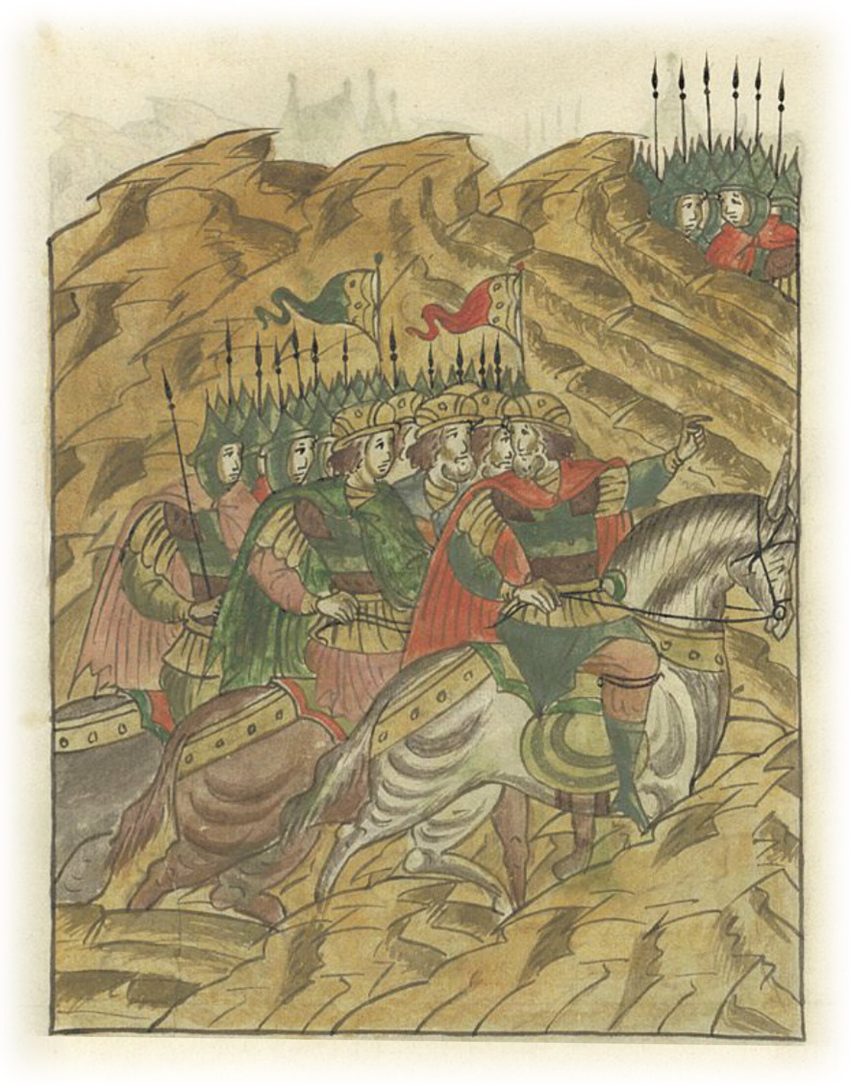 Воеводы царя Ивана Васильевича, разделившись, идут в погоню за царем Емгурчеем.