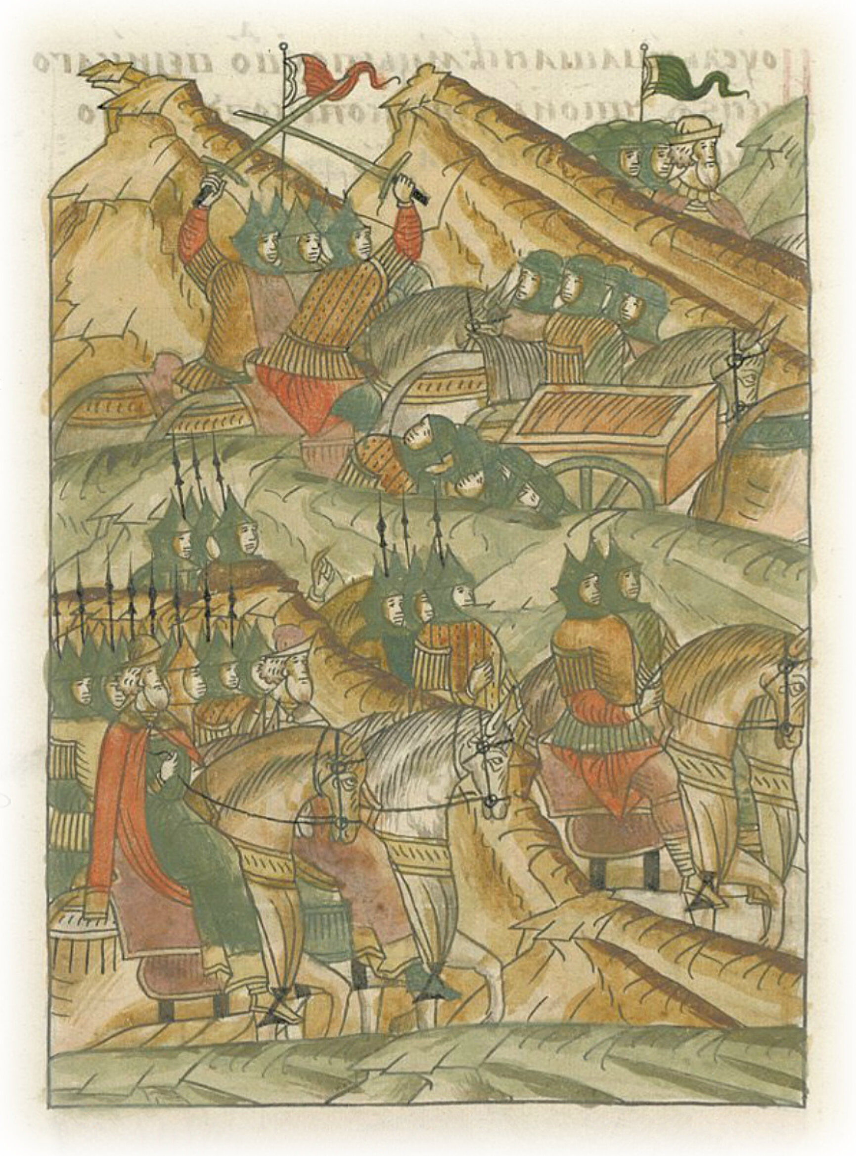 И многие люди великого князя из полков погнались (за ними), и нарушился строй полков, и побили многих немецких обозных людей,