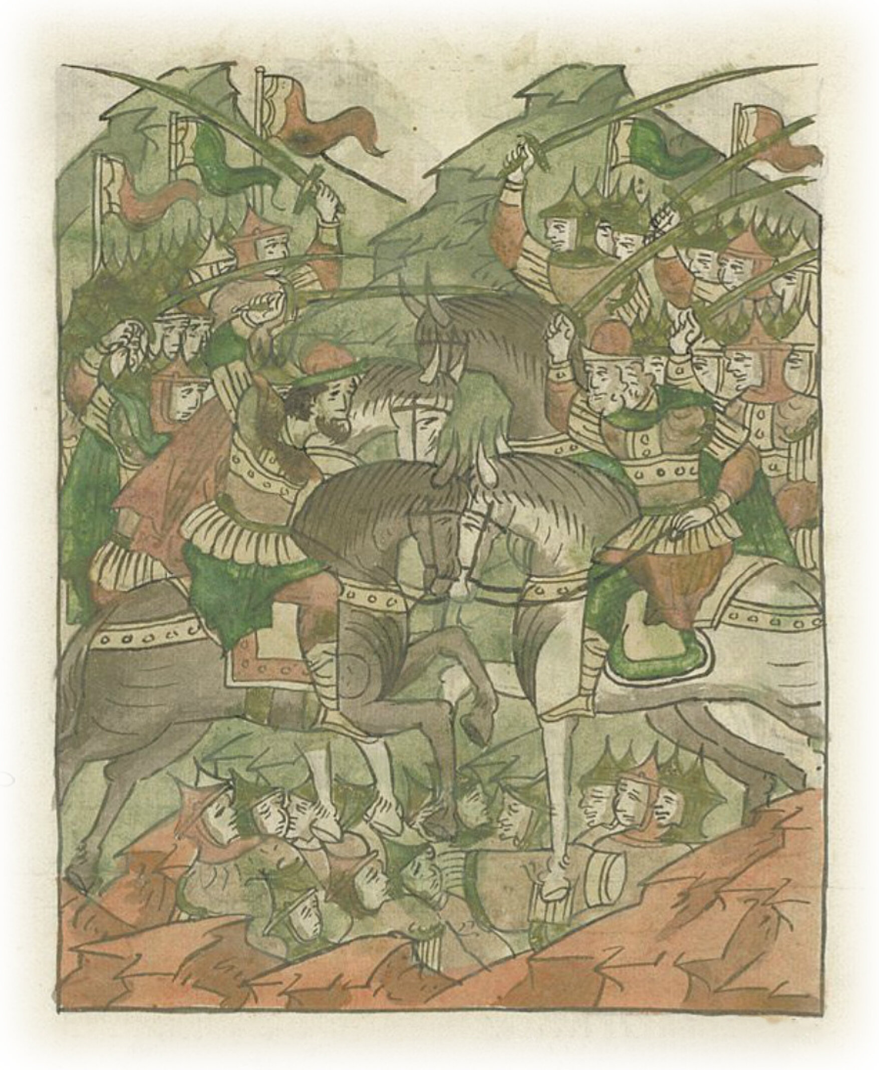 и напали на воевод великого князя. Воеводы же великого князя бились с ними крепко, и много людей с обеих сторон пало.