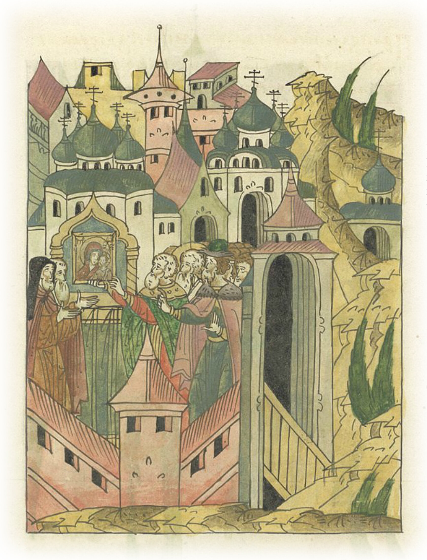 И, придя в церковь Благовещения, повелел поставить ее на том месте, где прежде стояла, когда отпустил ту икону.