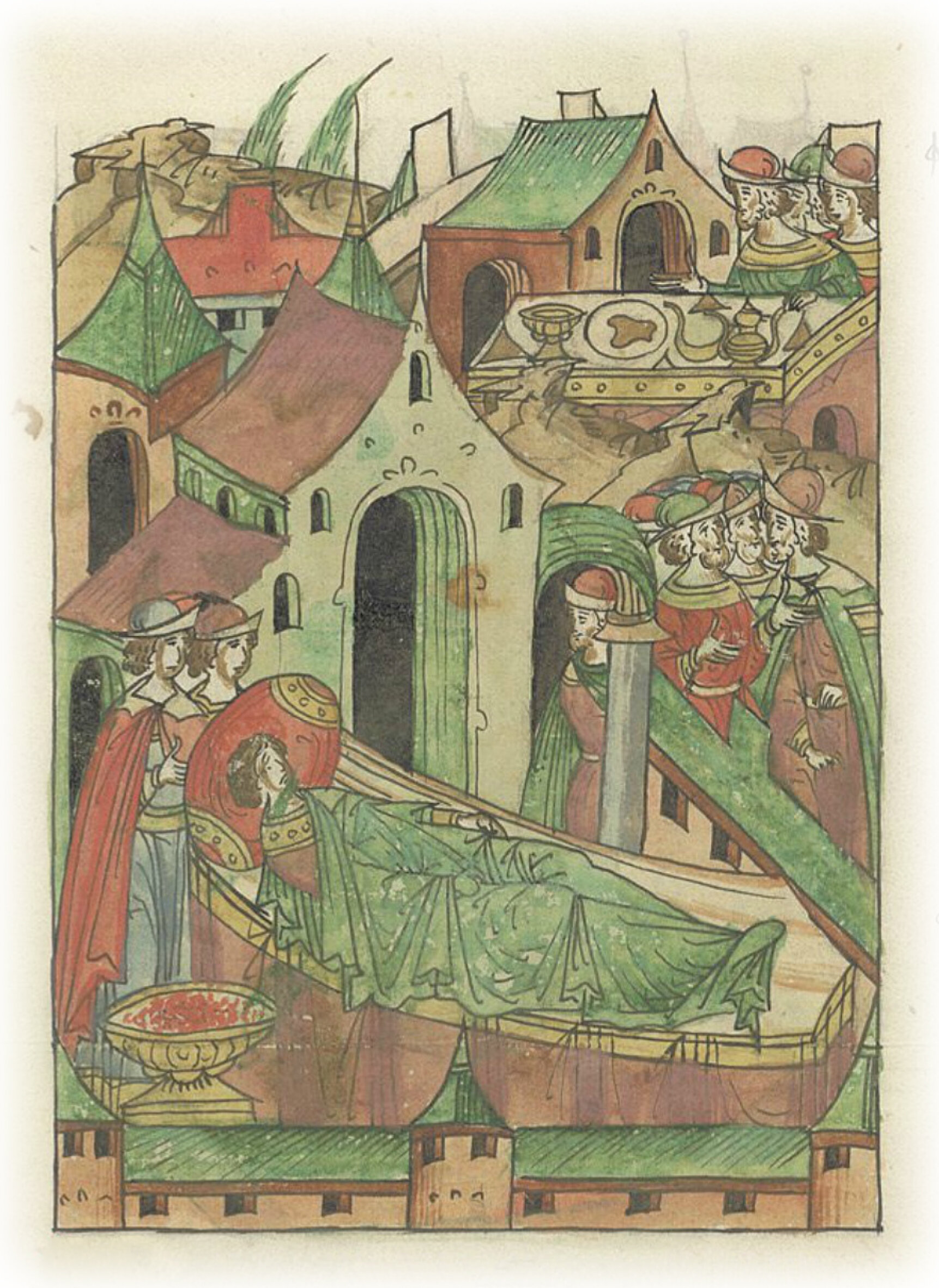 Они же обрадовались, принимая выступившую кровь за пот, и пошли есть к Дионисию Фомину, и выпили у него.