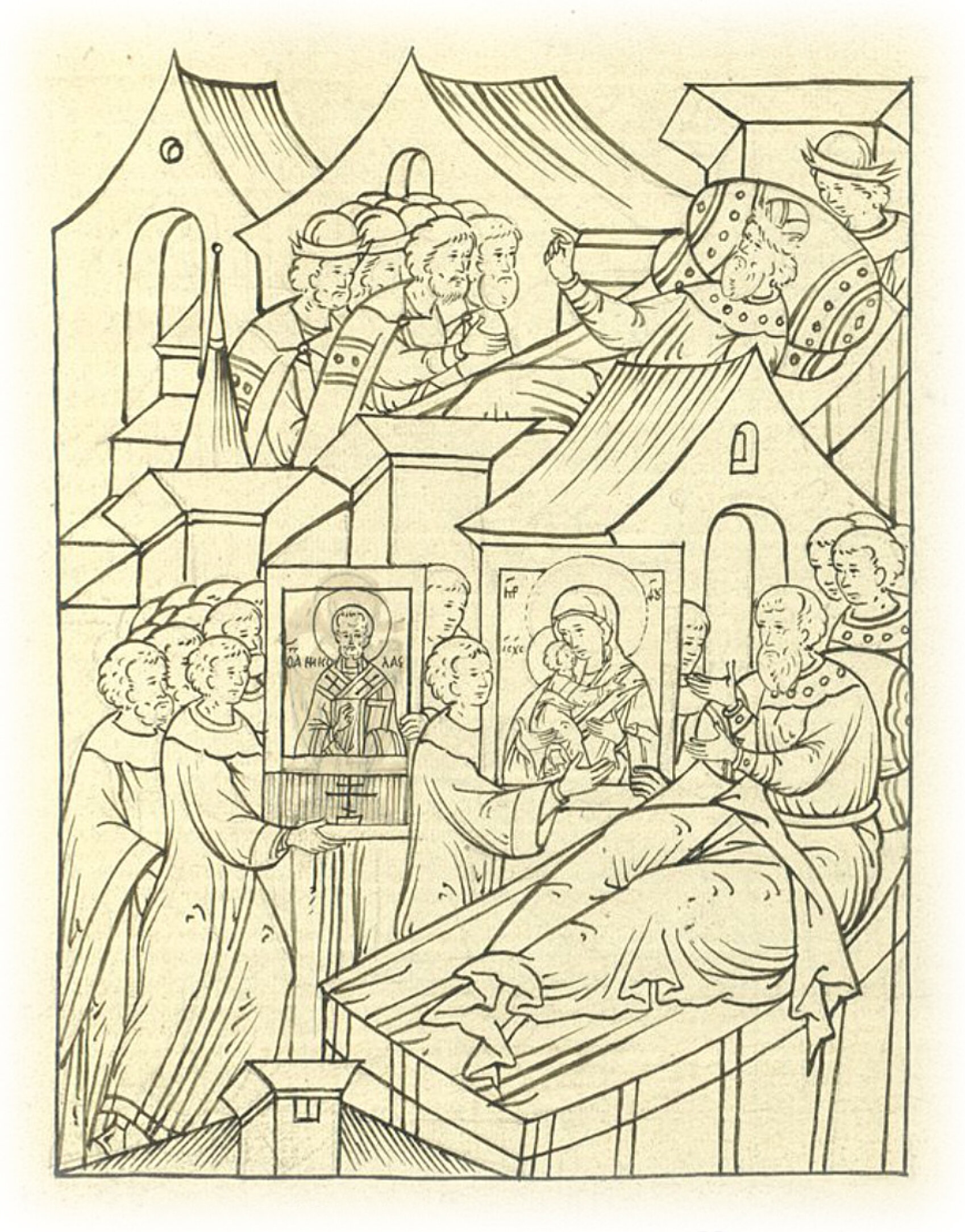 Князь же великий послал за иконами Пречистой Богородицы и святого Николы; и вскоре принесли иконы Пречистой и Николы чудотворца.