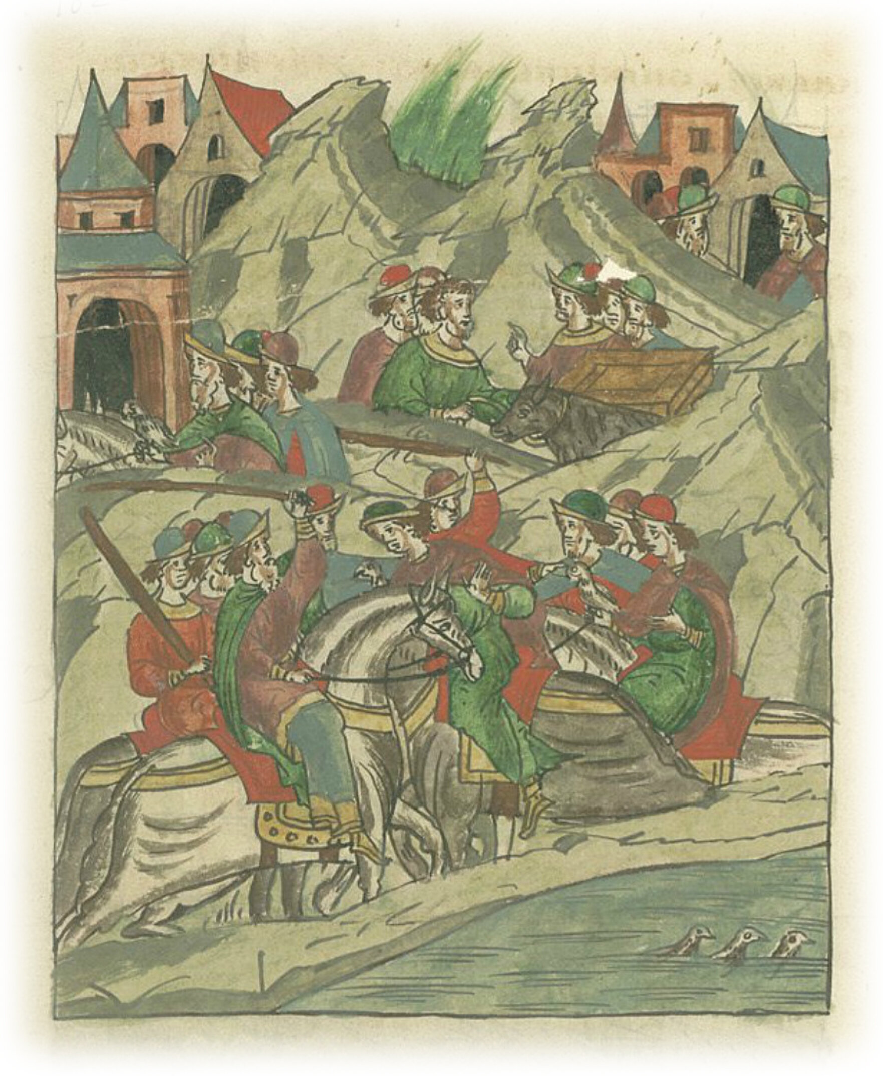 Языки говорят воеводам царя Ивана Васильевича, что магистр окопался большим рвом вокруг города Рындола, бьет из пушек и пищалей и приступает к Рындолу.