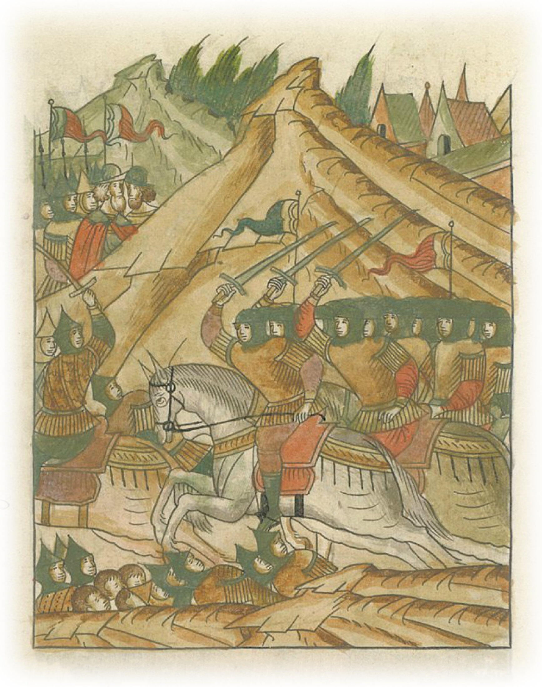 Языки говорят воеводам царя Ивана Васильевича, что магистр окопался большим рвом вокруг города Рындола, бьет из пушек и пищалей и приступает к Рындолу.