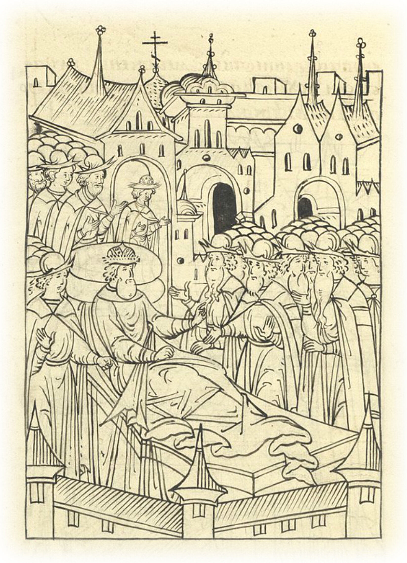 И призвал к себе бояр своих – князя Ивана и князя Василия Васильевичей Шуйских, и Шигону, и Петра Головина, и дьяков своих Меньшого Путятина, Федора Мишурина; и были у него тогда бояре от третьего часа и до седьмого, и приказал им о своем сыне великом князе Иване Васильевиче и об устроении земском, и как править после него государством.