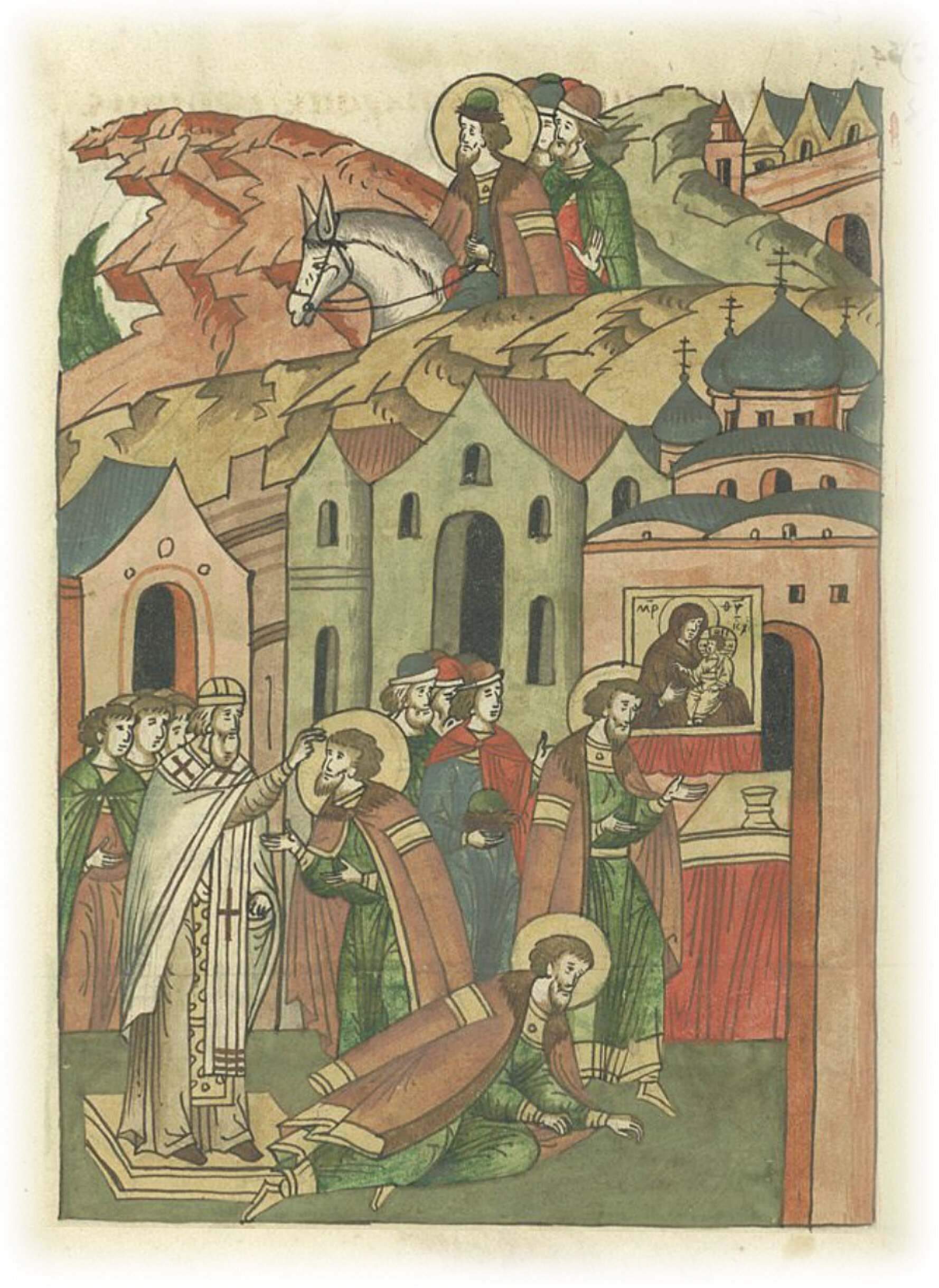 Князь Александр Ярославич приходит в Ростов, берет благословение у епископа Кирилла и благодарит бога, что приехал из Новгорода в добром здоровье.