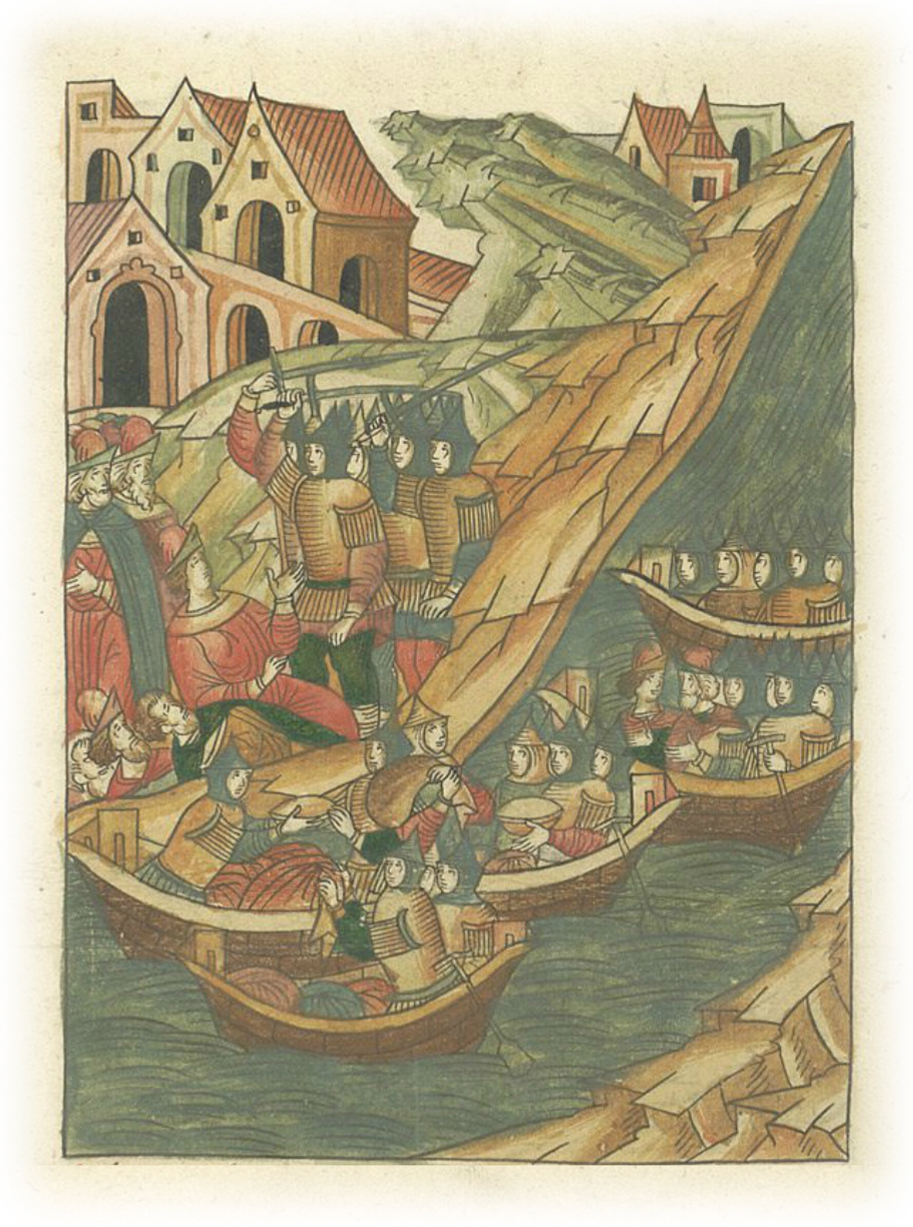 А оттуда пошли вниз по Волге к Сараю, грабя и убивая христианских купцов.