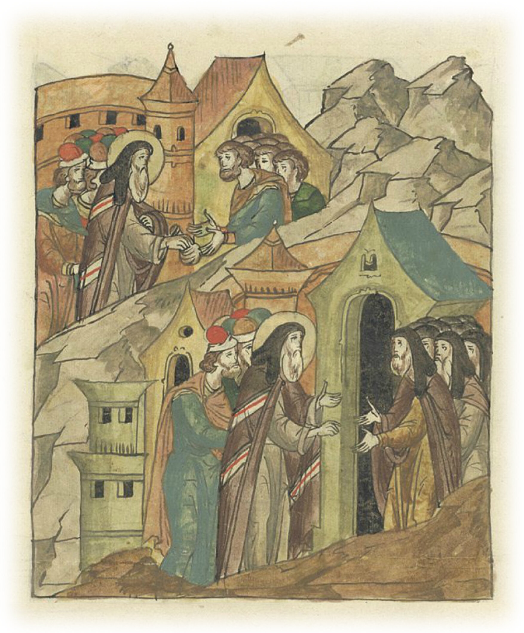 О Савве Сербском. Пройдя через пустынные места, Савва приходит в Фиваиду и в скит, и на Черную гору, и отдает живущим там людям часть богатства.