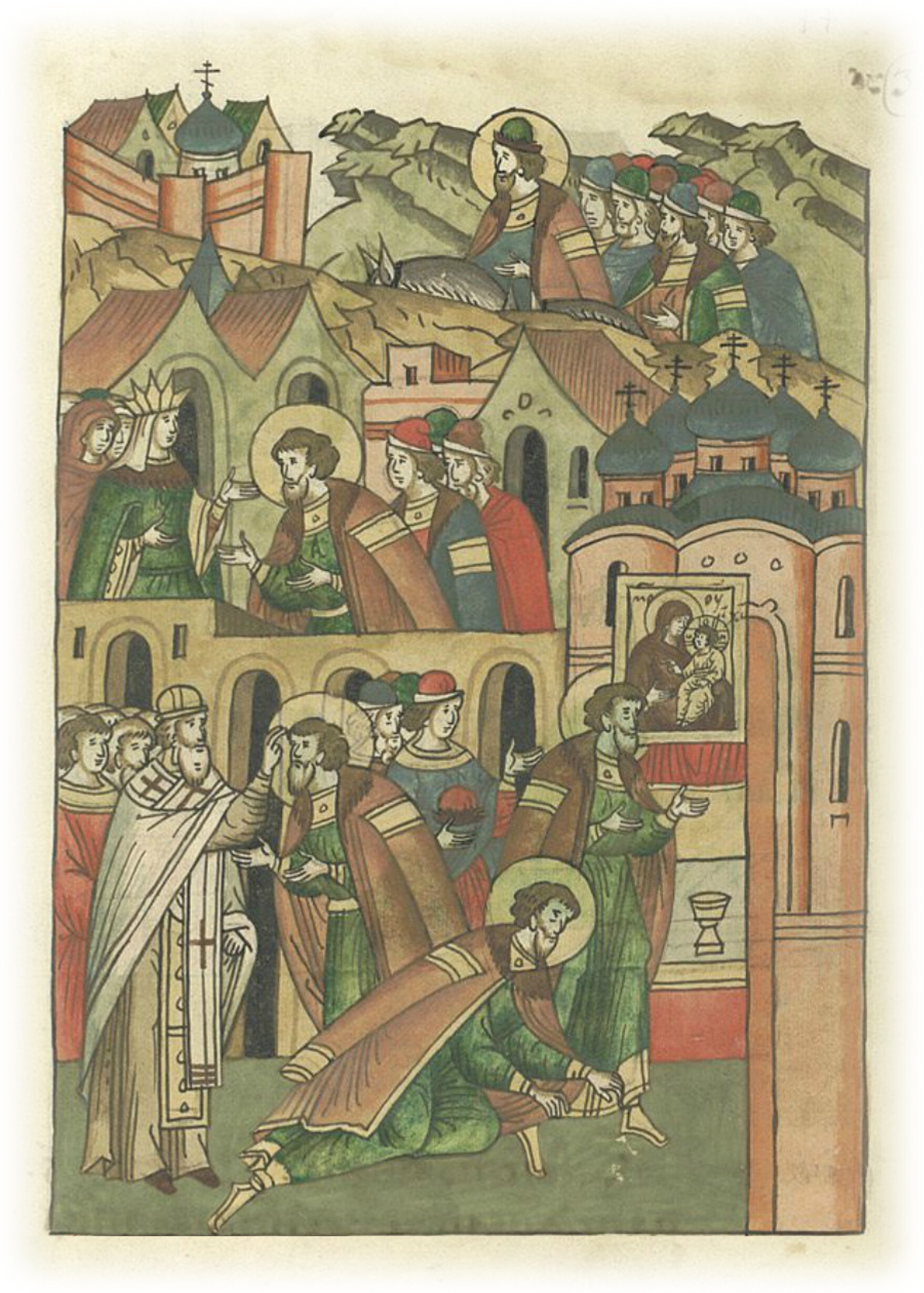 И поклонился Господу Богу и Пречистой Богородице, и целовал святой образ Ее, и благословился у отца своего Кирилла епископа и у великой княгини, и пошел в свою отчину во Владимир.