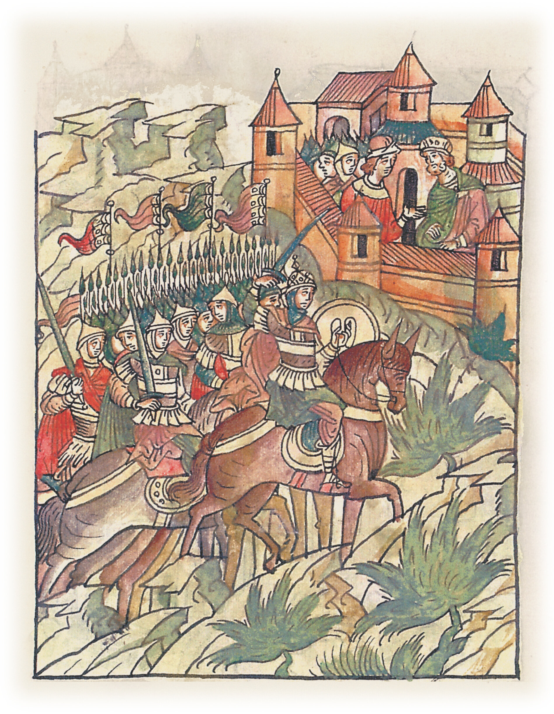 Языки говорят воеводам царя Ивана Васильевича, что магистр окопался большим рвом вокруг города Рындола, бьет из пушек и пищалей и приступает к Рындолу.