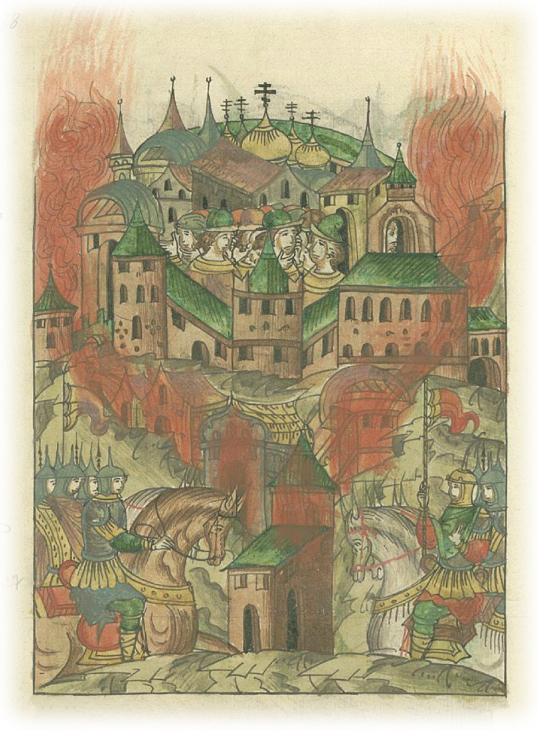 И повелели поджечь посад, и был великий мятеж, вопил и кричал народ, а огонь гудел, и огненные языки вздымались в воздух, и город был окружен со всех сторон татарами.
