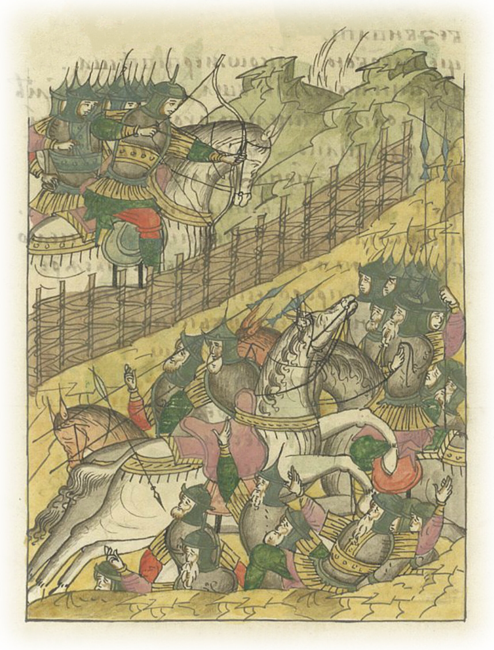 И пошли против них. Но между ними был плетень и сугробы снежные великие, и нельзя было вместе сойтись. Воины же великого князя, видя крепкие доспехи на новгородцах, начали стрелами бить по коням их; кони же их как взбесились и начали метаться под ними и сбрасывать их с себя. Они же, не зная такого боя, словно омертвели, и руки их ослабели; копья же имели длинные и не могли поднять их так, как принято у воинов, но на землю опускали их, а кони бились под ними. И так валились под коней своих, не умея сдержать их. И сбылось реченное пророческое слово над ними: «Ложь, что конь во спасение, и во множестве силы своей – не спасется».