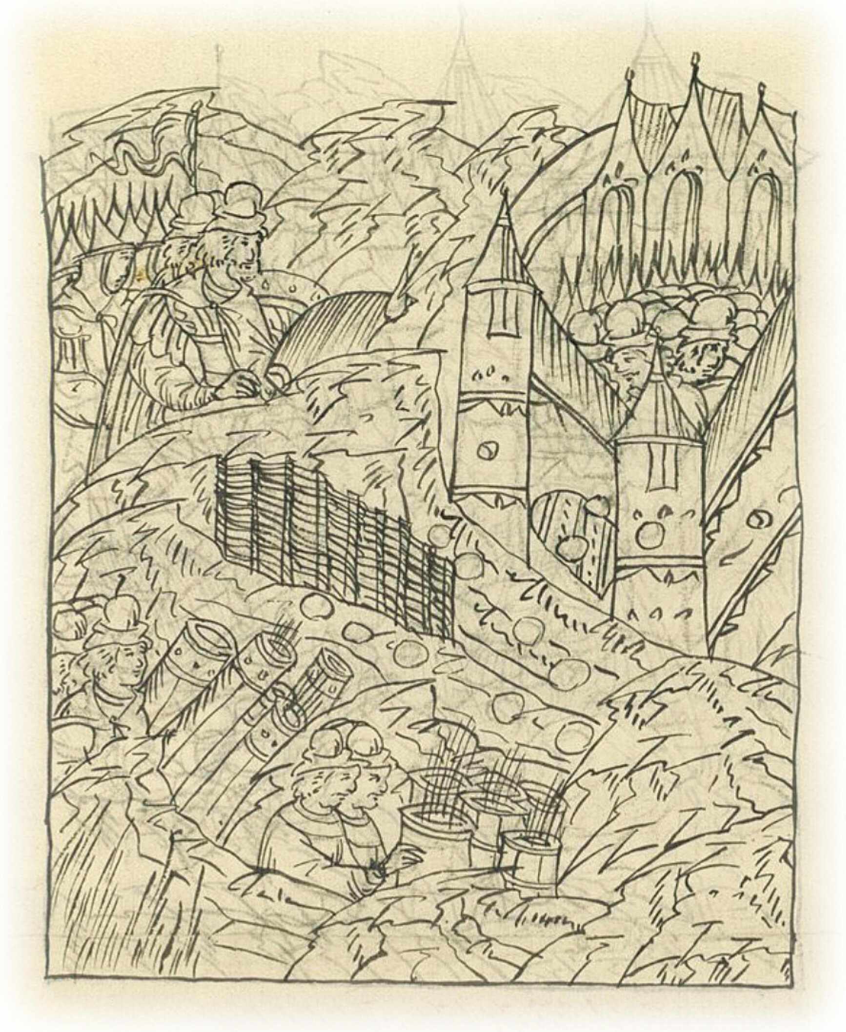 Языки говорят воеводам царя Ивана Васильевича, что магистр окопался большим рвом вокруг города Рындола, бьет из пушек и пищалей и приступает к Рындолу.