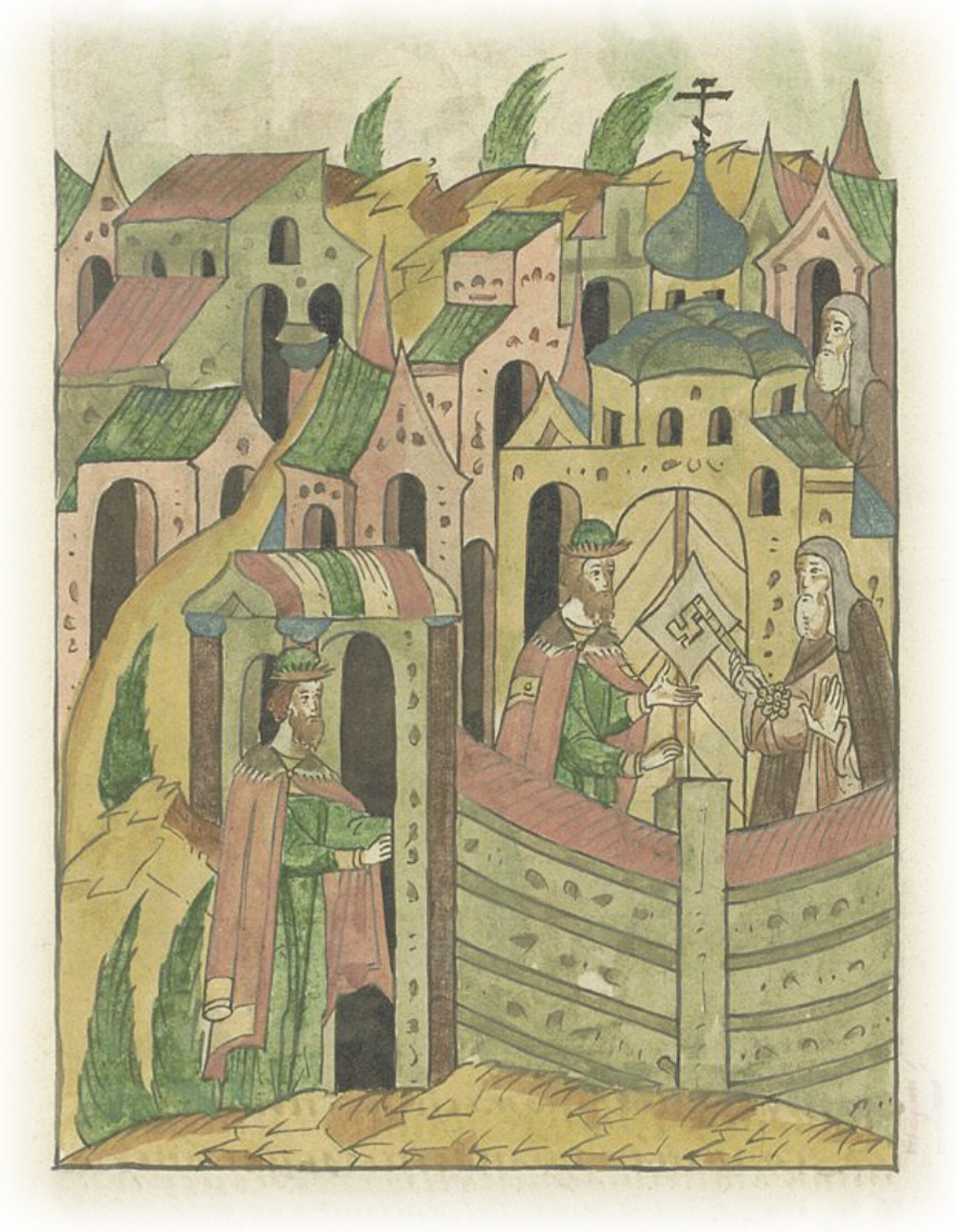 Увидел князь великий, что нет ему никакой помощи и быстро пошел в монастырь к каменной церкви святой Троицы. Пономарь же, инок именем Никифор, прибежал и отомкнул церковь, и князь великий вошел в церковь; а он, закрыв великого князя, ушел и схоронился.
