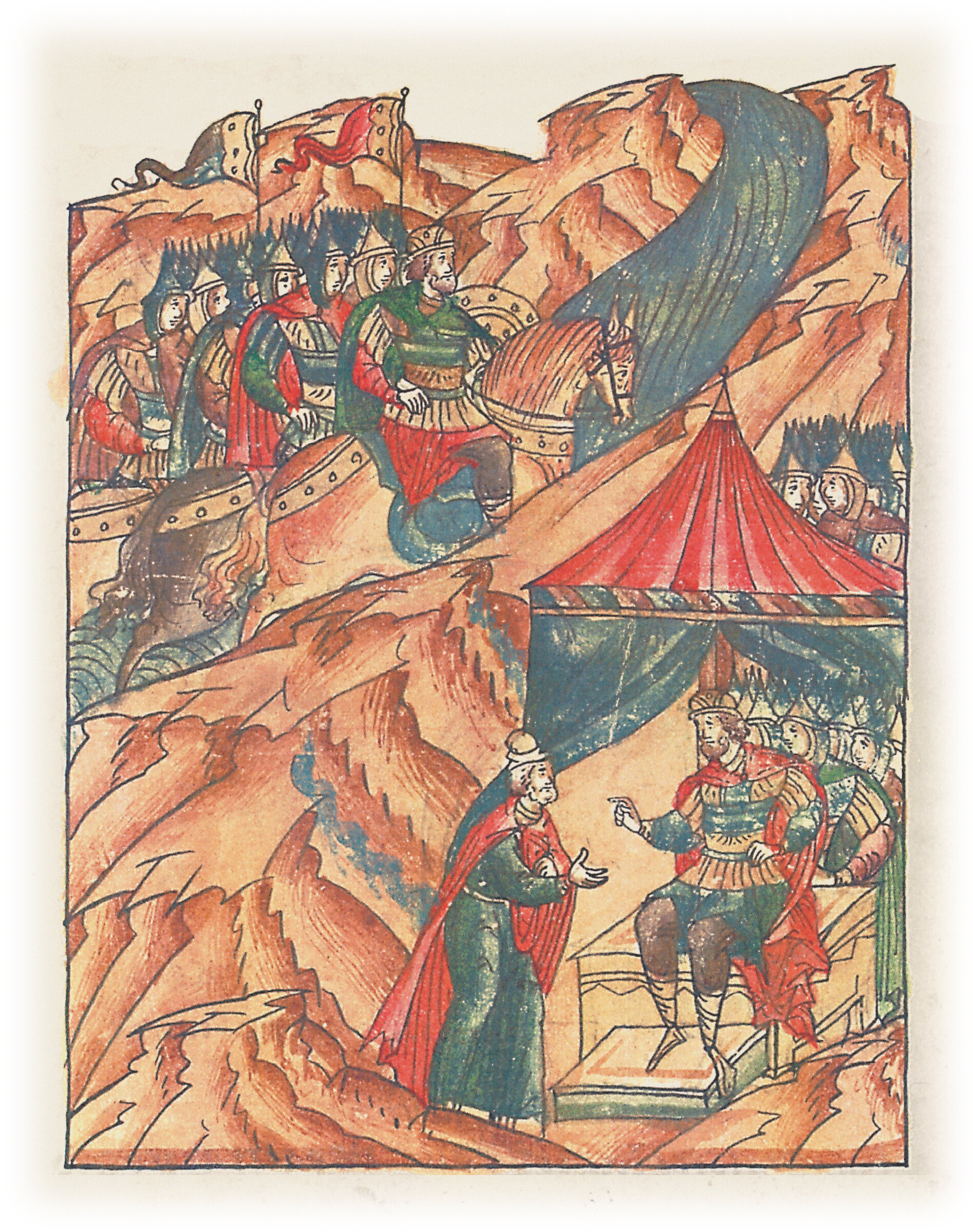 Воеводы царя Ивана Васильевича, разделившись, идут в погоню за царем Емгурчеем.