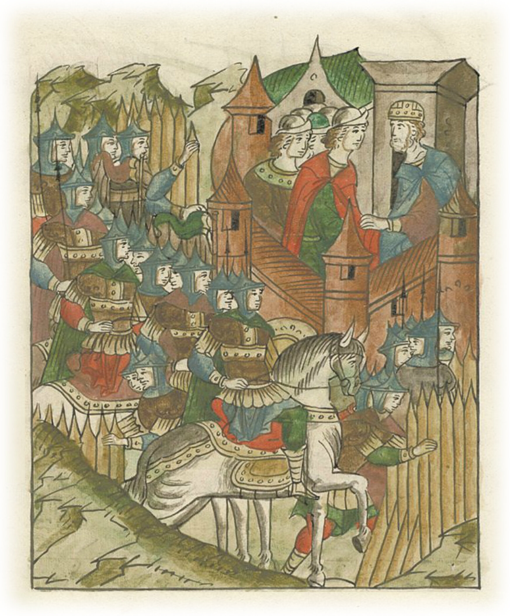 Языки говорят воеводам царя Ивана Васильевича, что магистр окопался большим рвом вокруг города Рындола, бьет из пушек и пищалей и приступает к Рындолу.