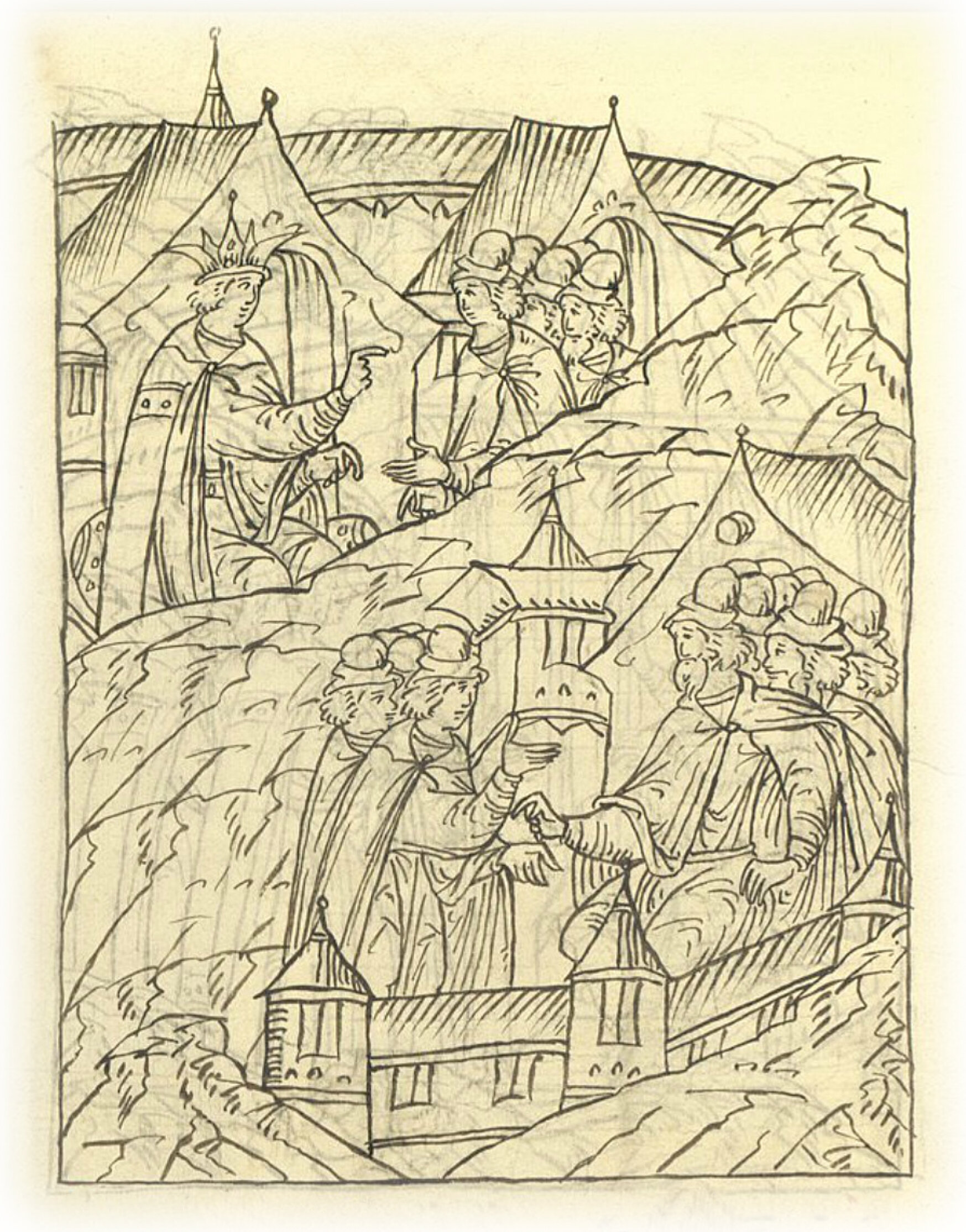 Языки говорят воеводам царя Ивана Васильевича, что магистр окопался большим рвом вокруг города Рындола, бьет из пушек и пищалей и приступает к Рындолу.