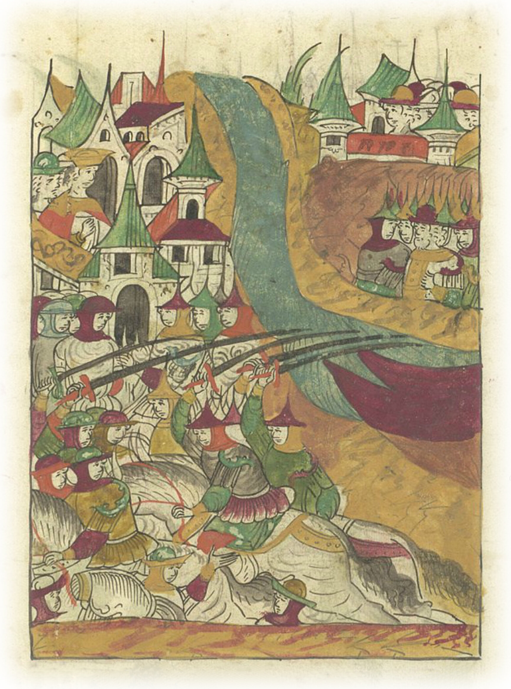 Языки говорят воеводам царя Ивана Васильевича, что магистр окопался большим рвом вокруг города Рындола, бьет из пушек и пищалей и приступает к Рындолу.