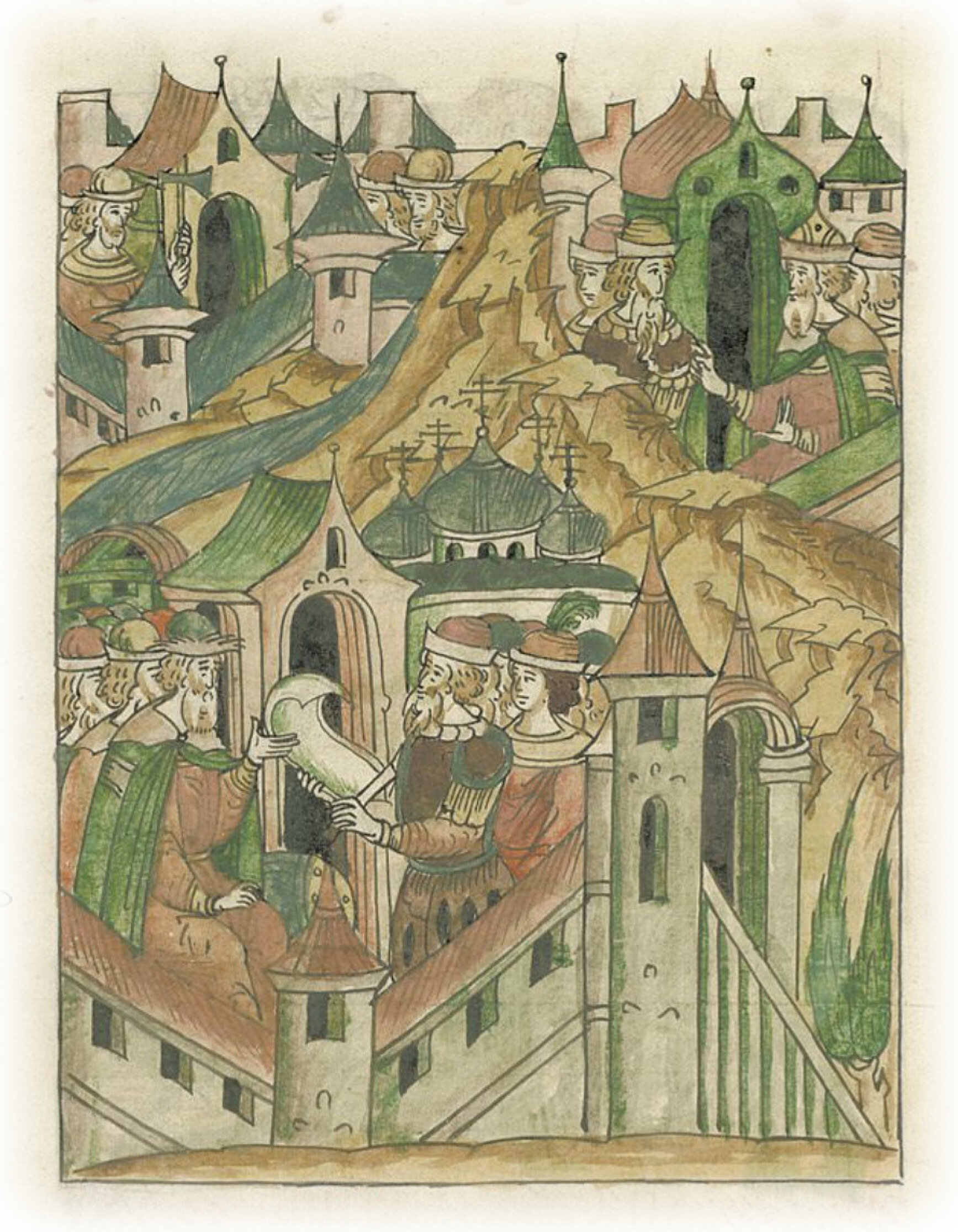 О посланных от Римского папы. В том же году был у великого князя на Москве от папы Римского с грамотой человек его именем Павел. О построении города Тулы. В том же году завершилось создание города каменного в Туле, и назвали его по прежнему его названию – город Тула, и река под ним – Тула же.