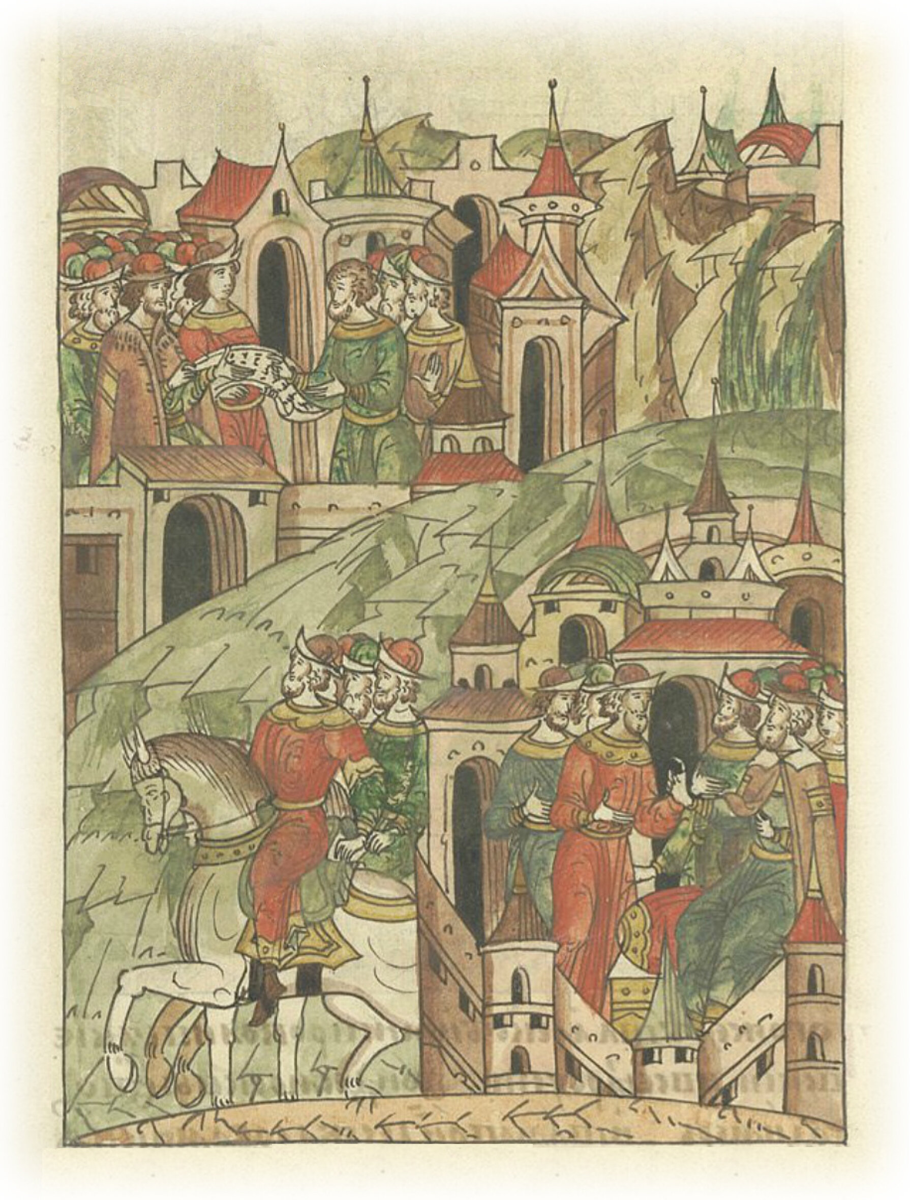 Князь Василий Михайлович Тверской договаривается о мире с великим князем Иваном Ивановичем.