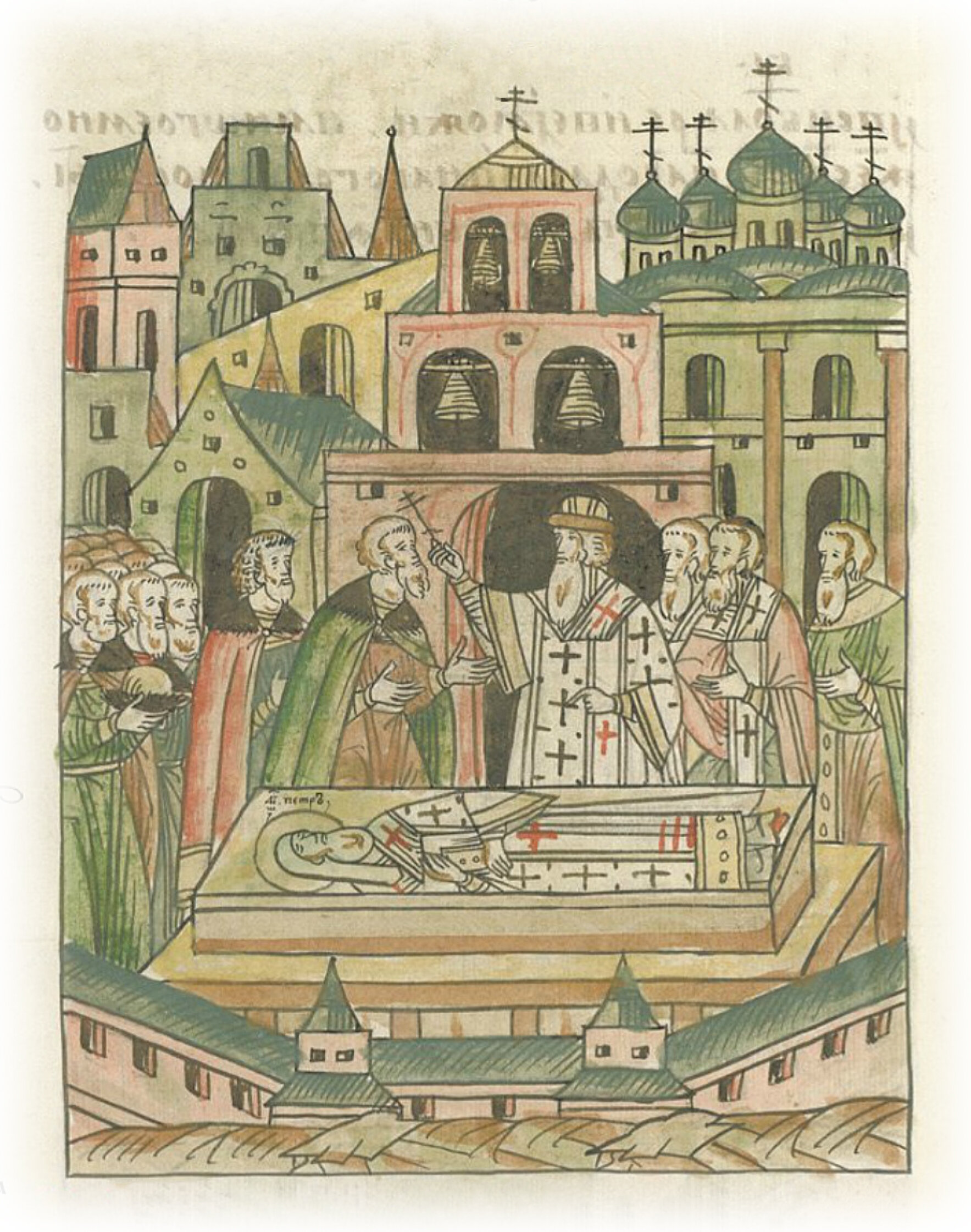 Перенесение мощей Петра митрополита и прочих святителей в новую церковь.
