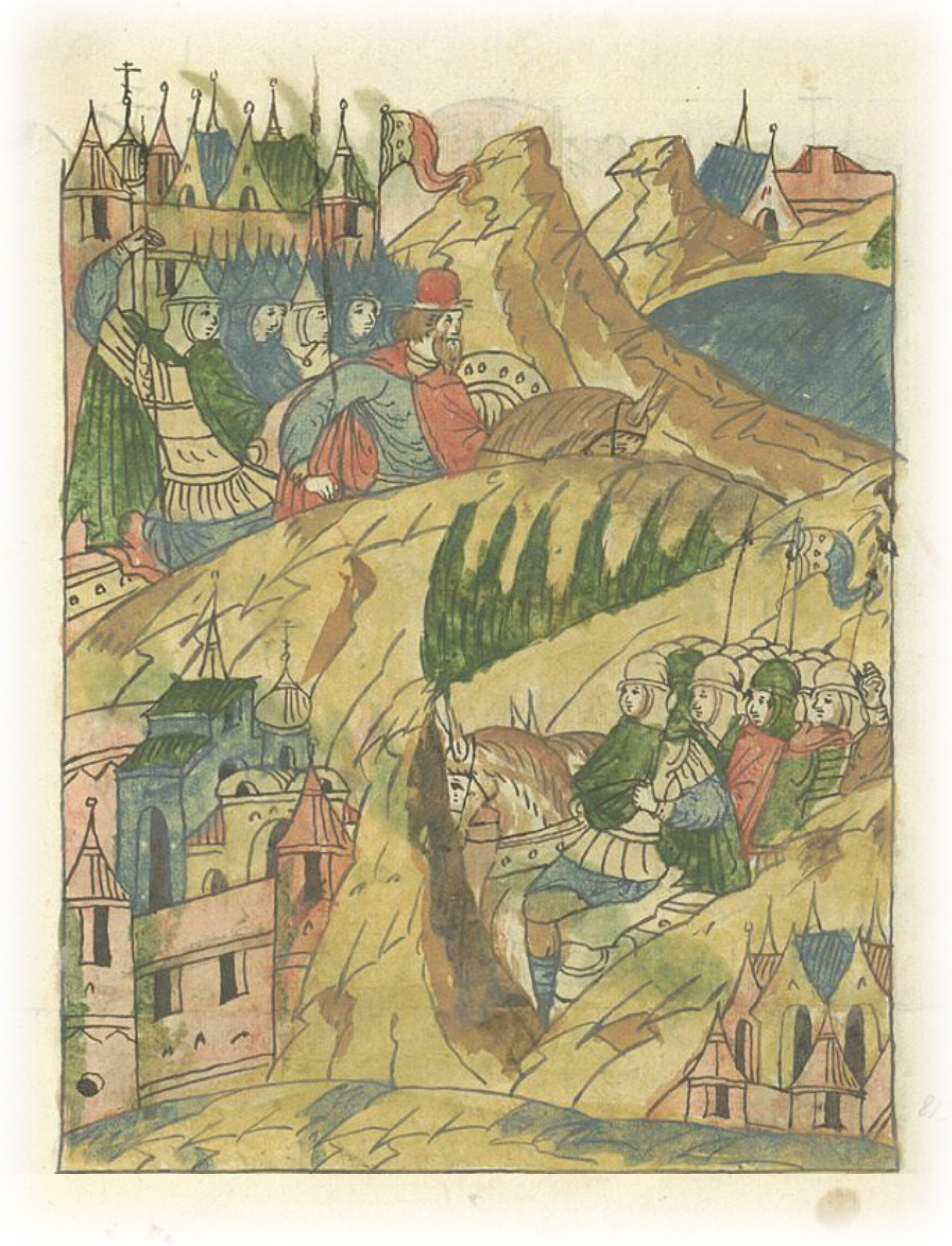 Воеводы царя Ивана Васильевича, разделившись, идут в погоню за царем Емгурчеем.