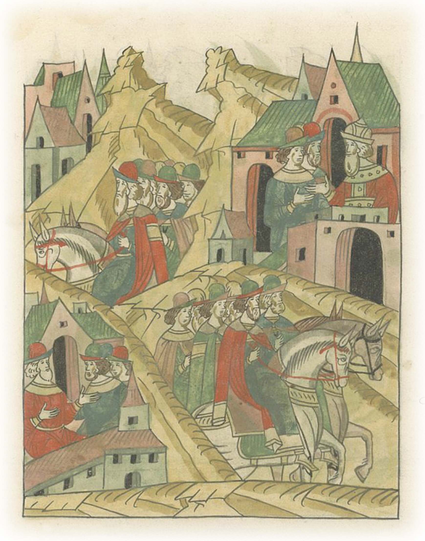 Послы великого князя Ивана Васильевича идут из Кракова к Венгерскому королю Владиславу, а оттуда в Венецию.