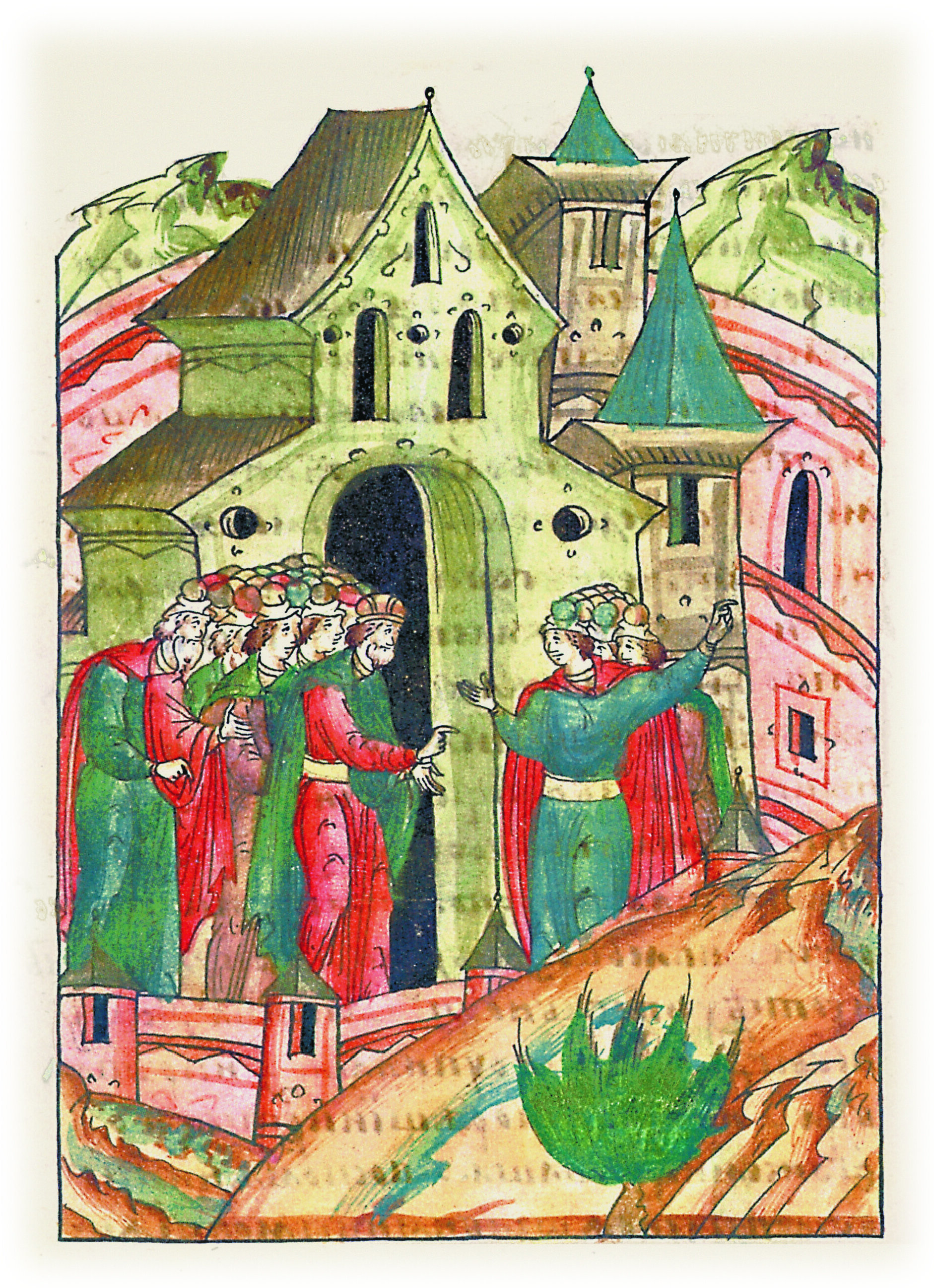 Ругодивские посадники Яким и Захар приезжают в Москву. Воеводы царя Ивана Васильевича Алексей Адашев и Иван Михайлов сообщают им, что государь пожалует их, если сдадут его воеводам помимо Ругодива Вышгород.