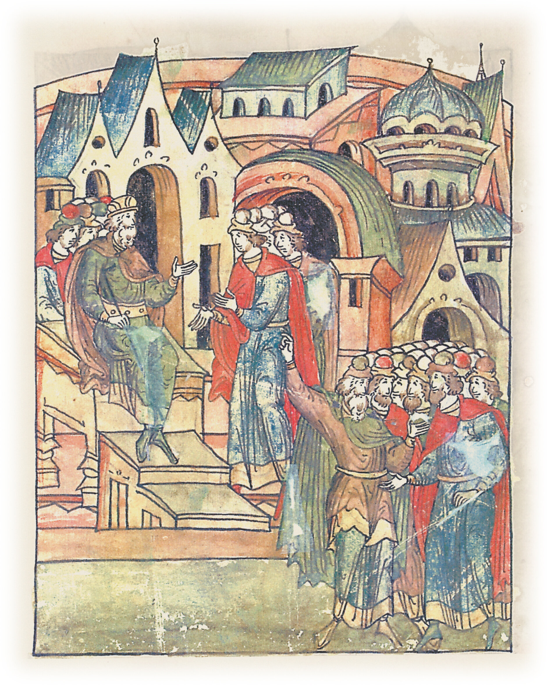 Ругодивские посадники Яким и Захар приезжают в Москву. Воеводы царя Ивана Васильевича Алексей Адашев и Иван Михайлов сообщают им, что государь пожалует их, если сдадут его воеводам помимо Ругодива Вышгород.