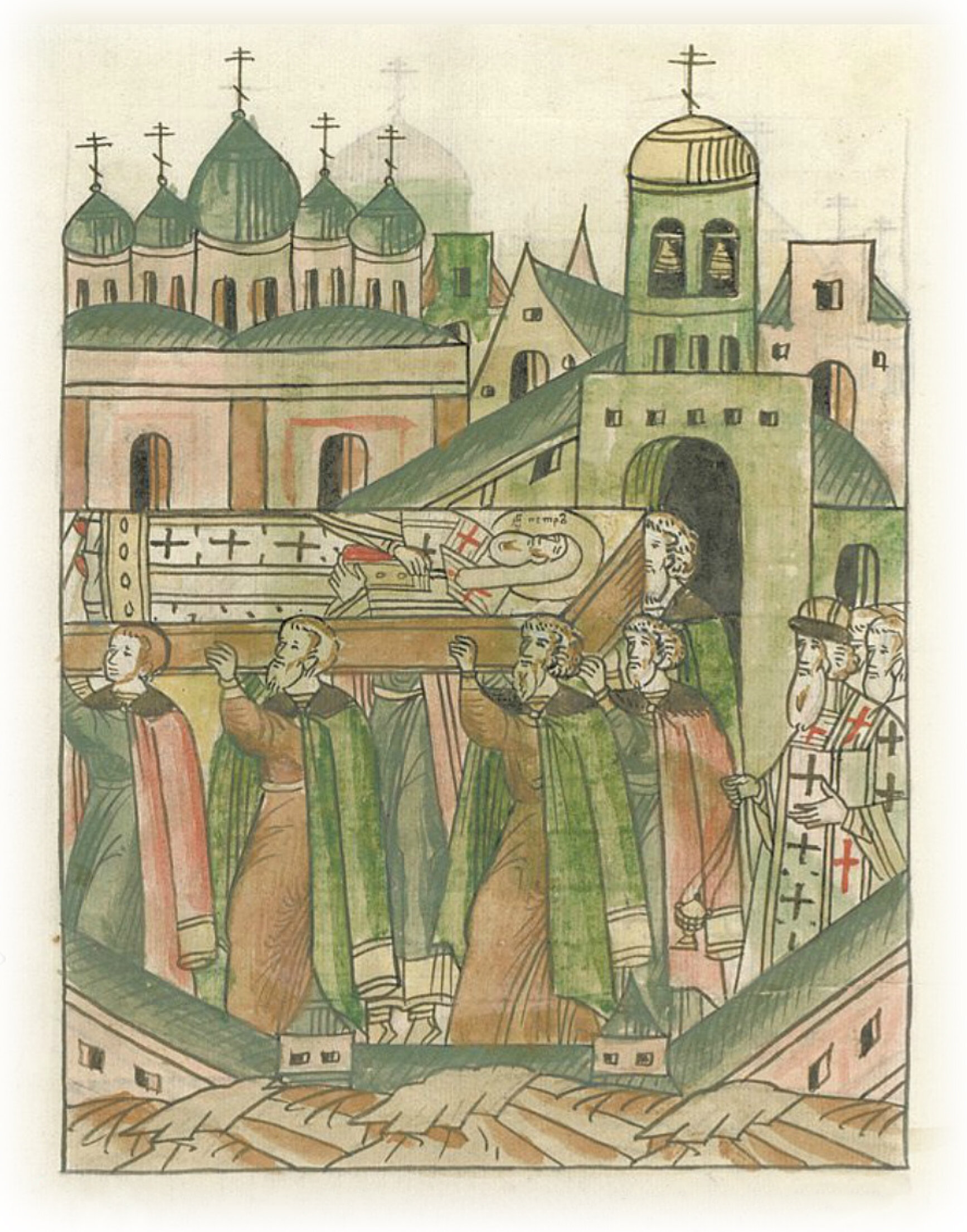 Перенесение мощей Петра митрополита и прочих святителей в новую церковь.