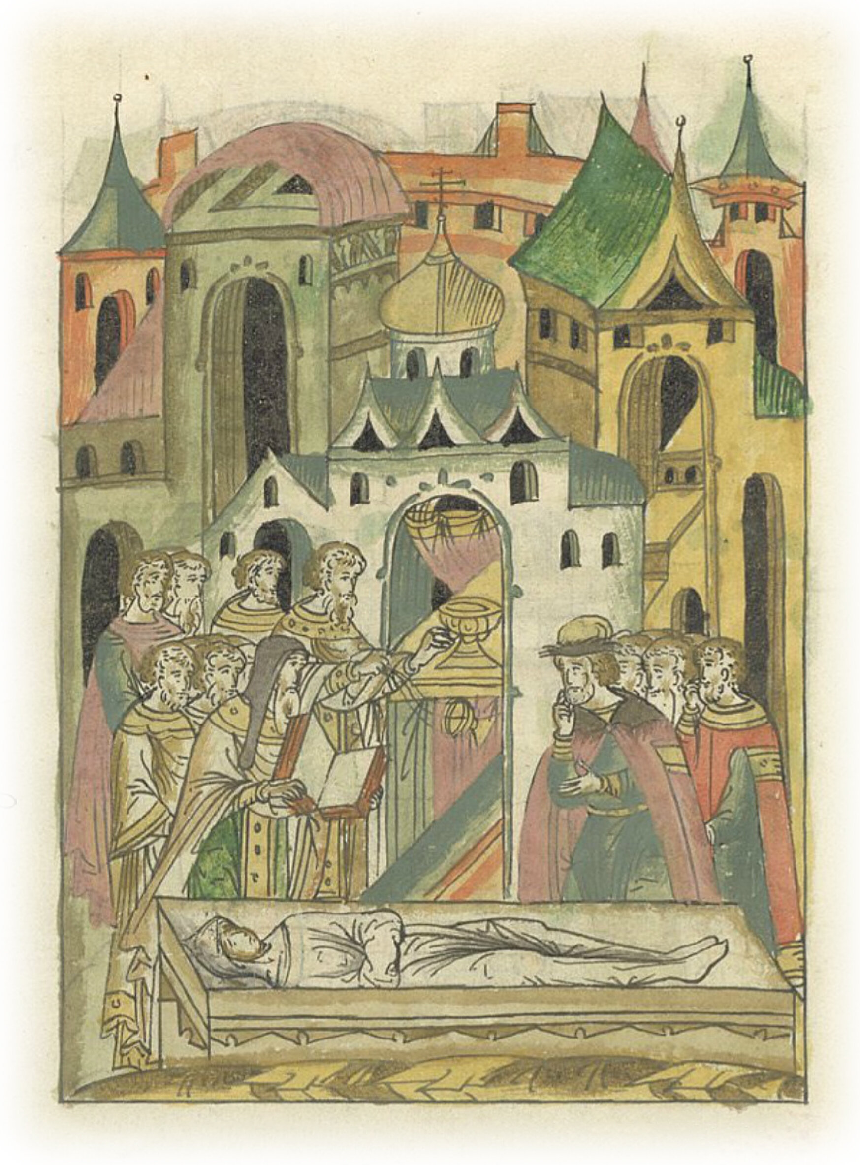О кончине князя Дмитрия Юрьевича Красного. Служба над телом князя.