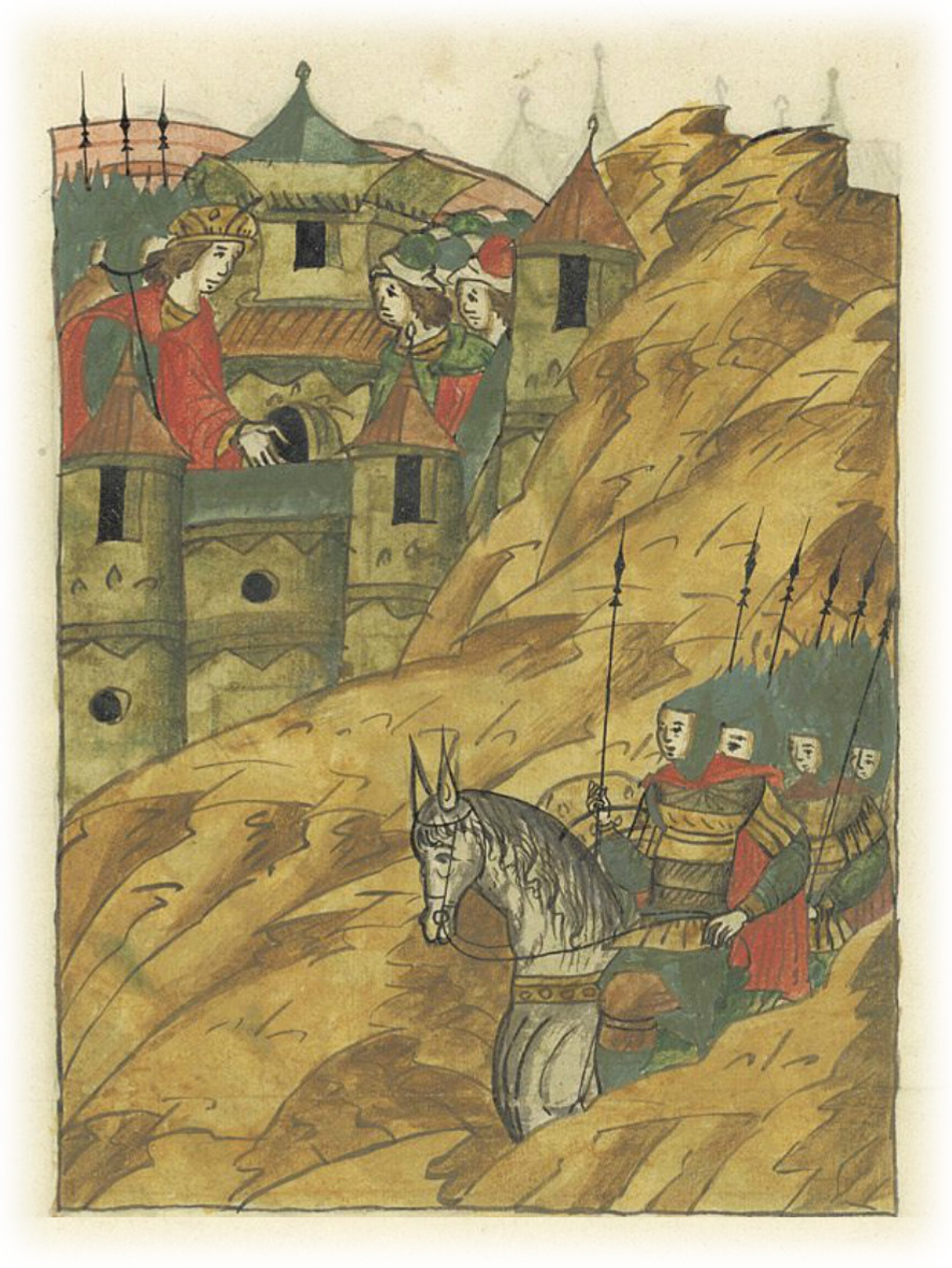Языки говорят воеводам царя Ивана Васильевича, что магистр окопался большим рвом вокруг города Рындола, бьет из пушек и пищалей и приступает к Рындолу.