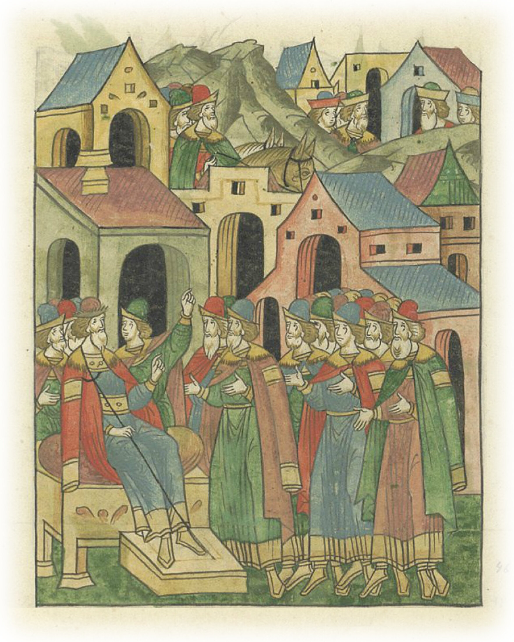 Ругодивские посадники Яким и Захар приезжают в Москву. Воеводы царя Ивана Васильевича Алексей Адашев и Иван Михайлов сообщают им, что государь пожалует их, если сдадут его воеводам помимо Ругодива Вышгород.