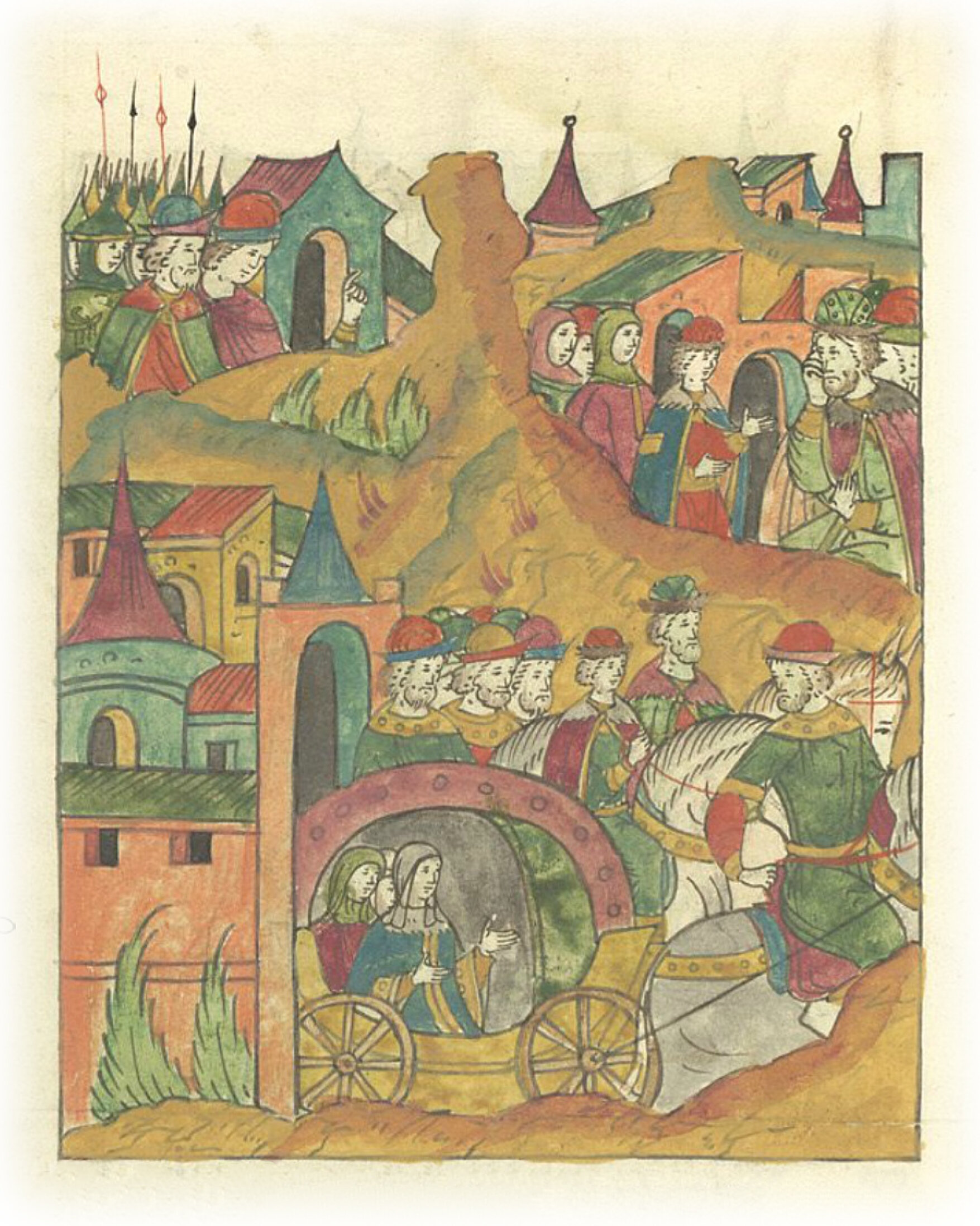 Князь Андрей Иванович бежит с княгиней и сыном из Старицы до Берновых сел.