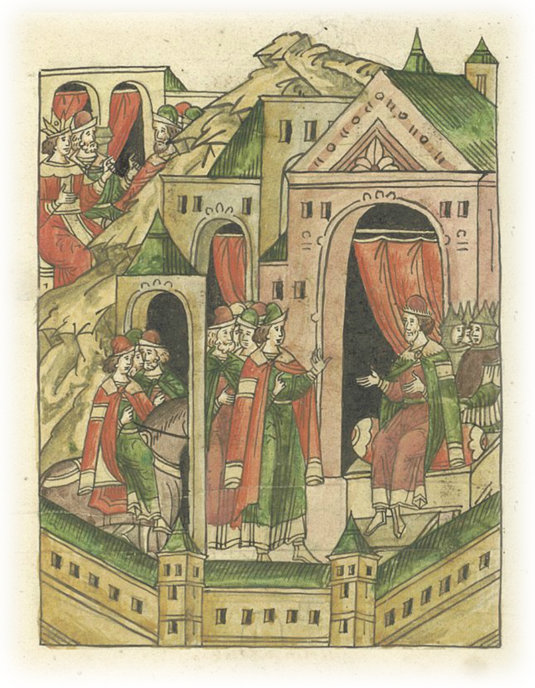 Ругодивские посадники Яким и Захар приезжают в Москву. Воеводы царя Ивана Васильевича Алексей Адашев и Иван Михайлов сообщают им, что государь пожалует их, если сдадут его воеводам помимо Ругодива Вышгород.