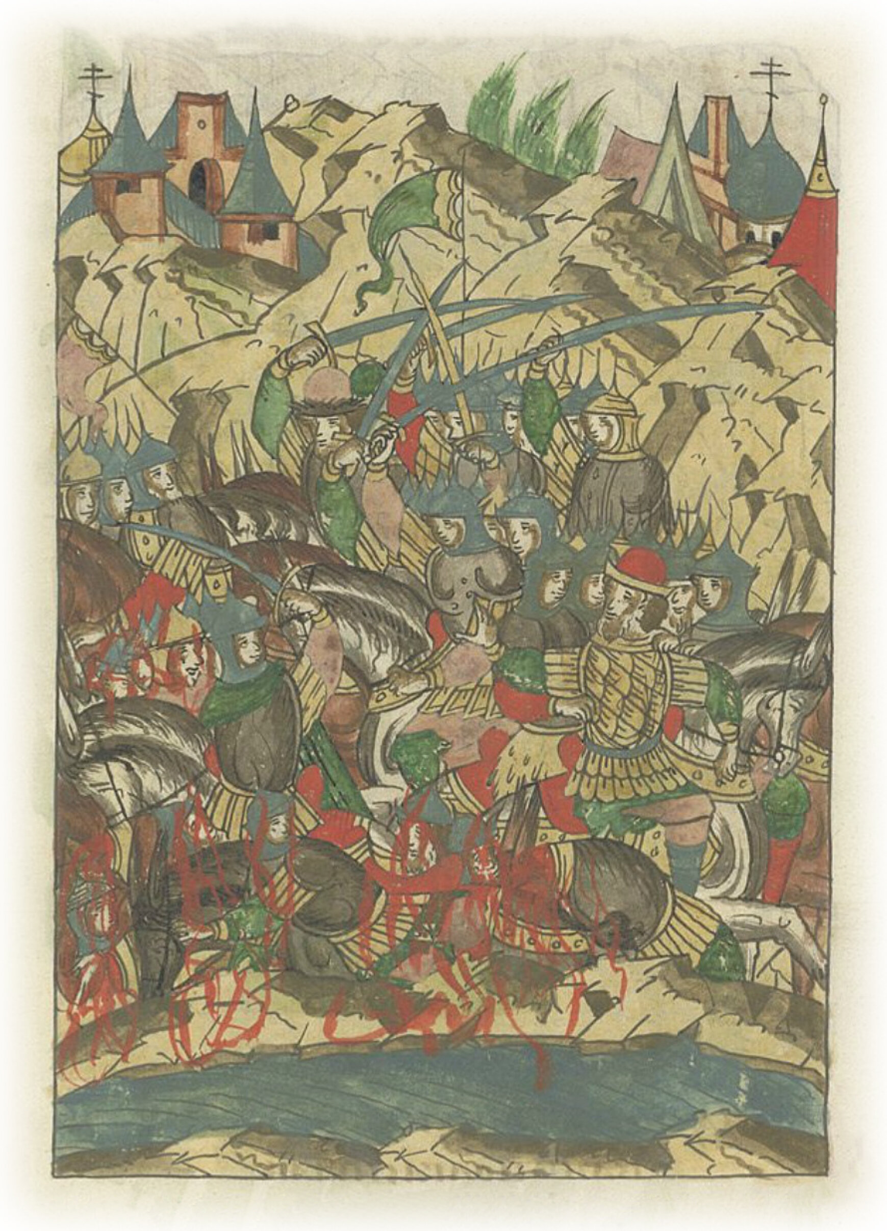И приготовились к бою на речке Куси, и победили войско великого князя, а воеводу великого князя Юрия Патрикеевича захватили в плен;