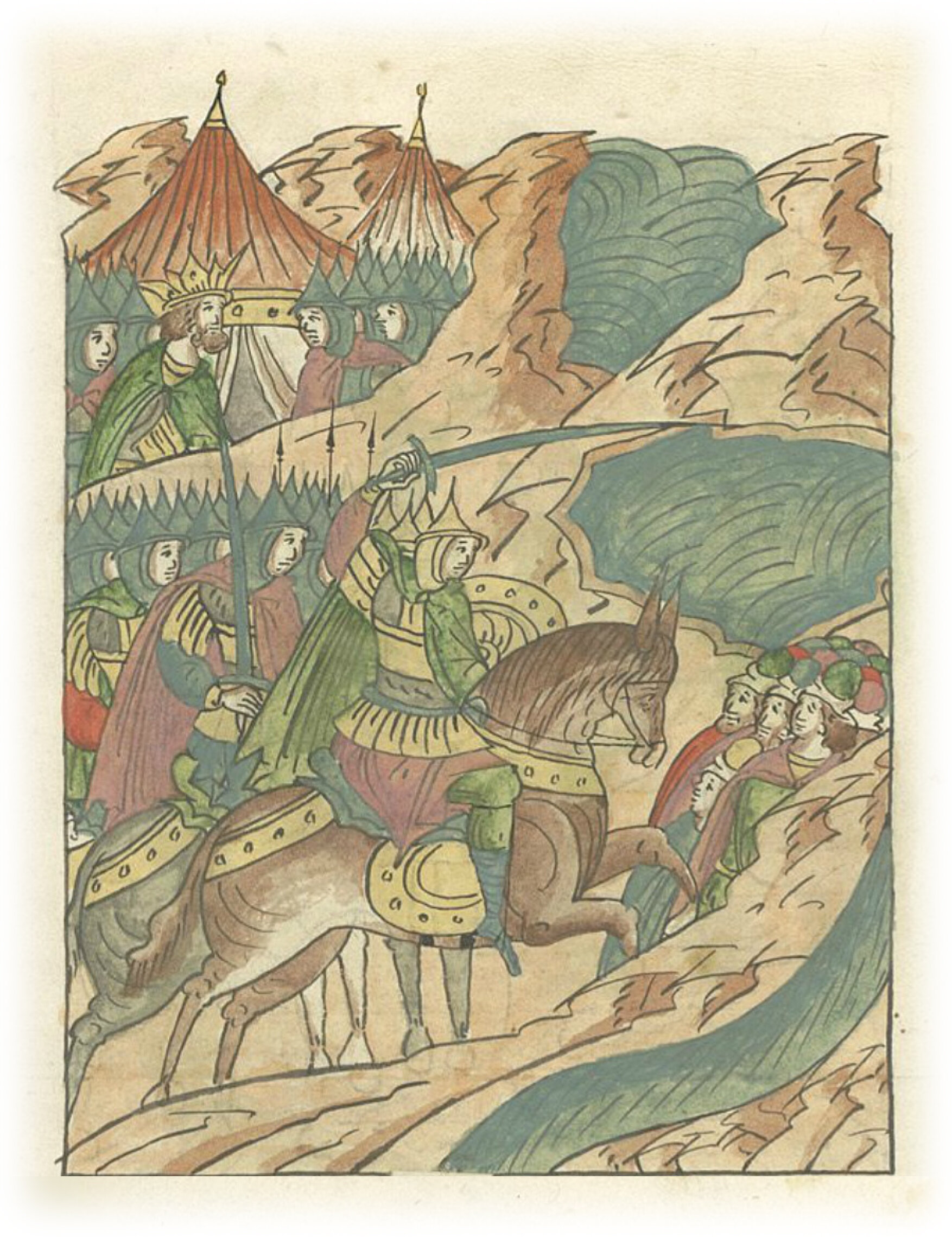 Воеводы царя Ивана Васильевича, разделившись, идут в погоню за царем Емгурчеем.