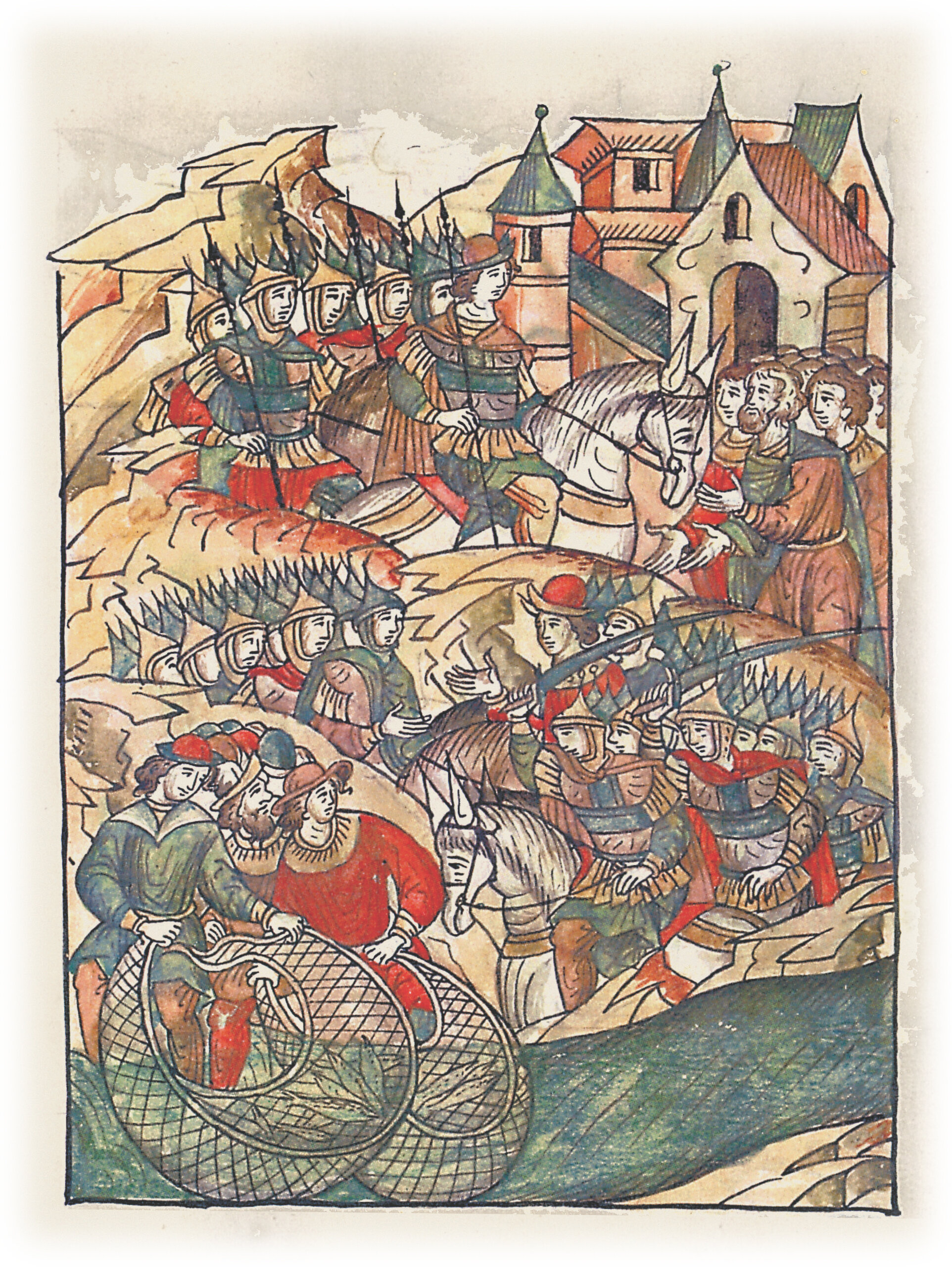 И пакостили рыболовам галичским. Пришли же к нему половцы многие, и скопилось у него воинов шесть тысяч, и пошли к городу Кучелмину, и рады были ему,
