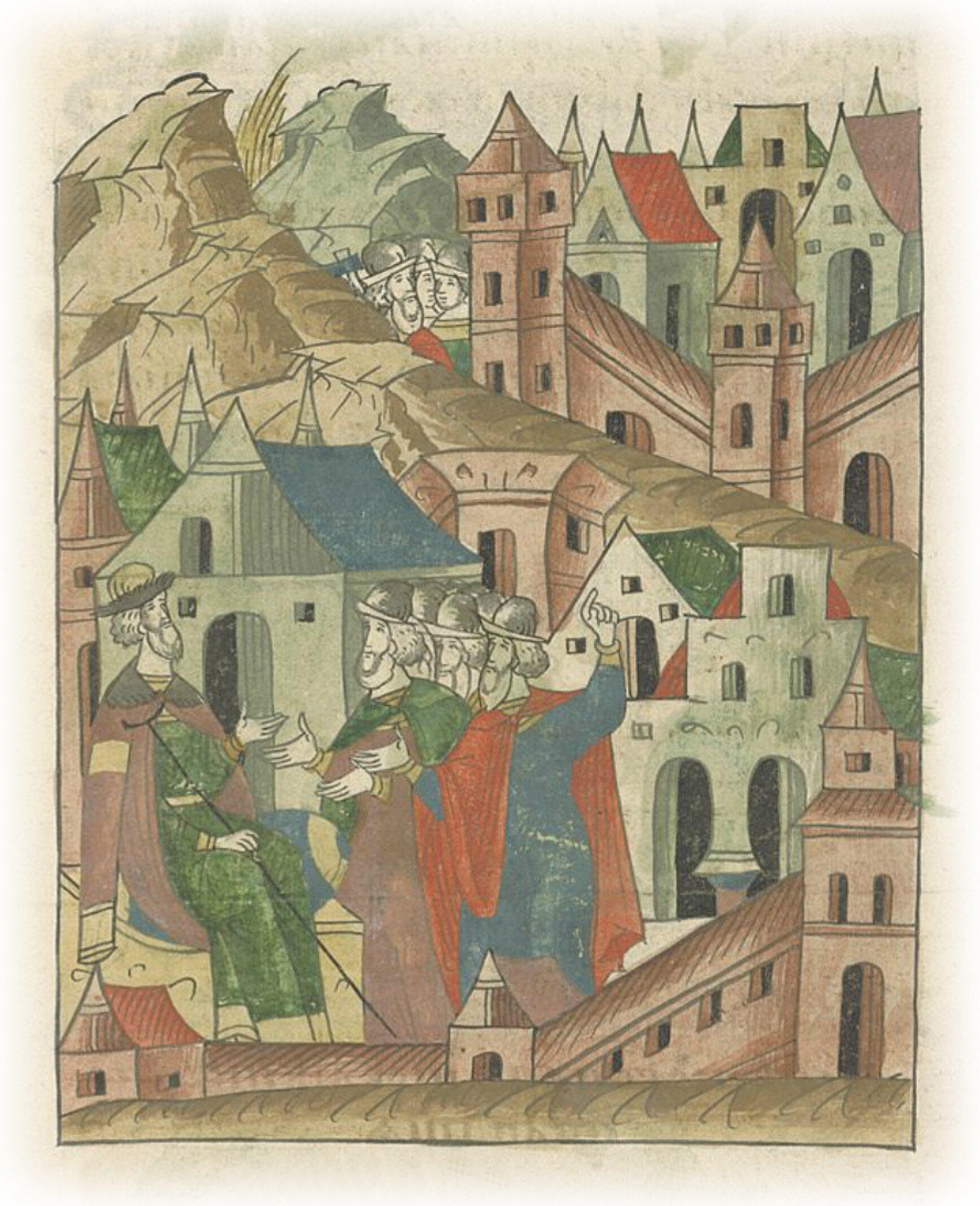 Ругодивские посадники Яким и Захар приезжают в Москву. Воеводы царя Ивана Васильевича Алексей Адашев и Иван Михайлов сообщают им, что государь пожалует их, если сдадут его воеводам помимо Ругодива Вышгород.