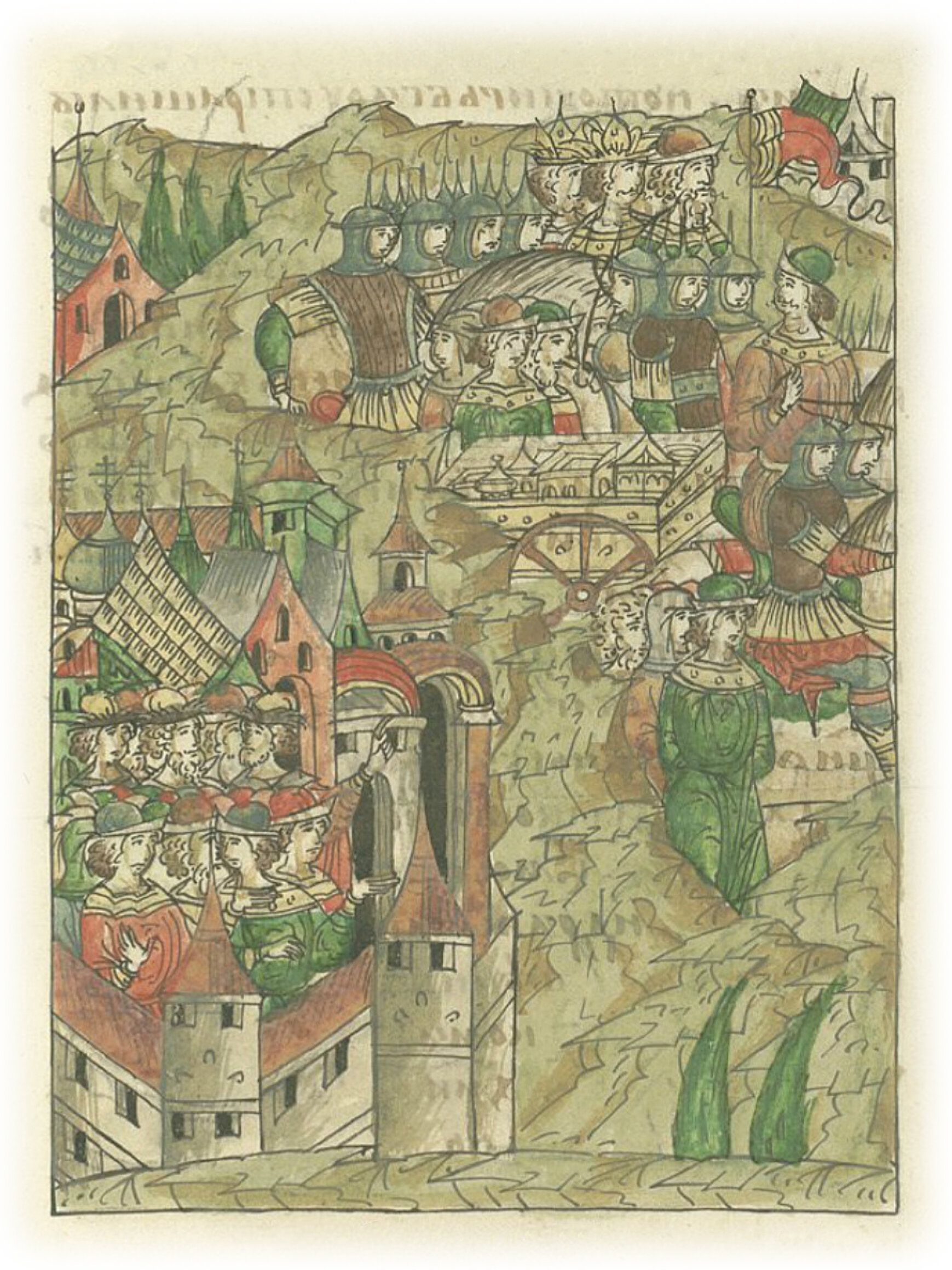 Языки говорят воеводам царя Ивана Васильевича, что магистр окопался большим рвом вокруг города Рындола, бьет из пушек и пищалей и приступает к Рындолу.