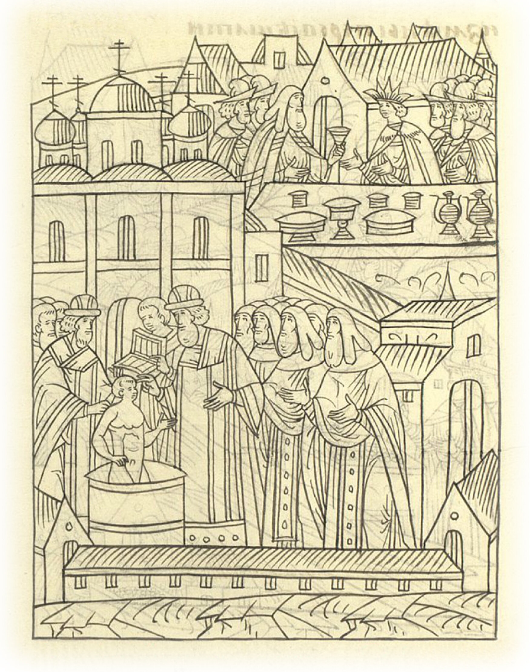О крещении Казанского царя. В 7061(1553) году (месяца) января в 8 (день) в воскресенье крещен был Казанский царь Утемиш-Гирей, сын Сафа-Кирея царя, и наречено было имя ему в святом крещении Александр царь; а крещен в Чудовом монастыре, а крестил его Макарий митрополит, а приемник был владыка Савва Крутицкий. И (после крещения) царь новопросвященный был на обеде у Макария митрополита.