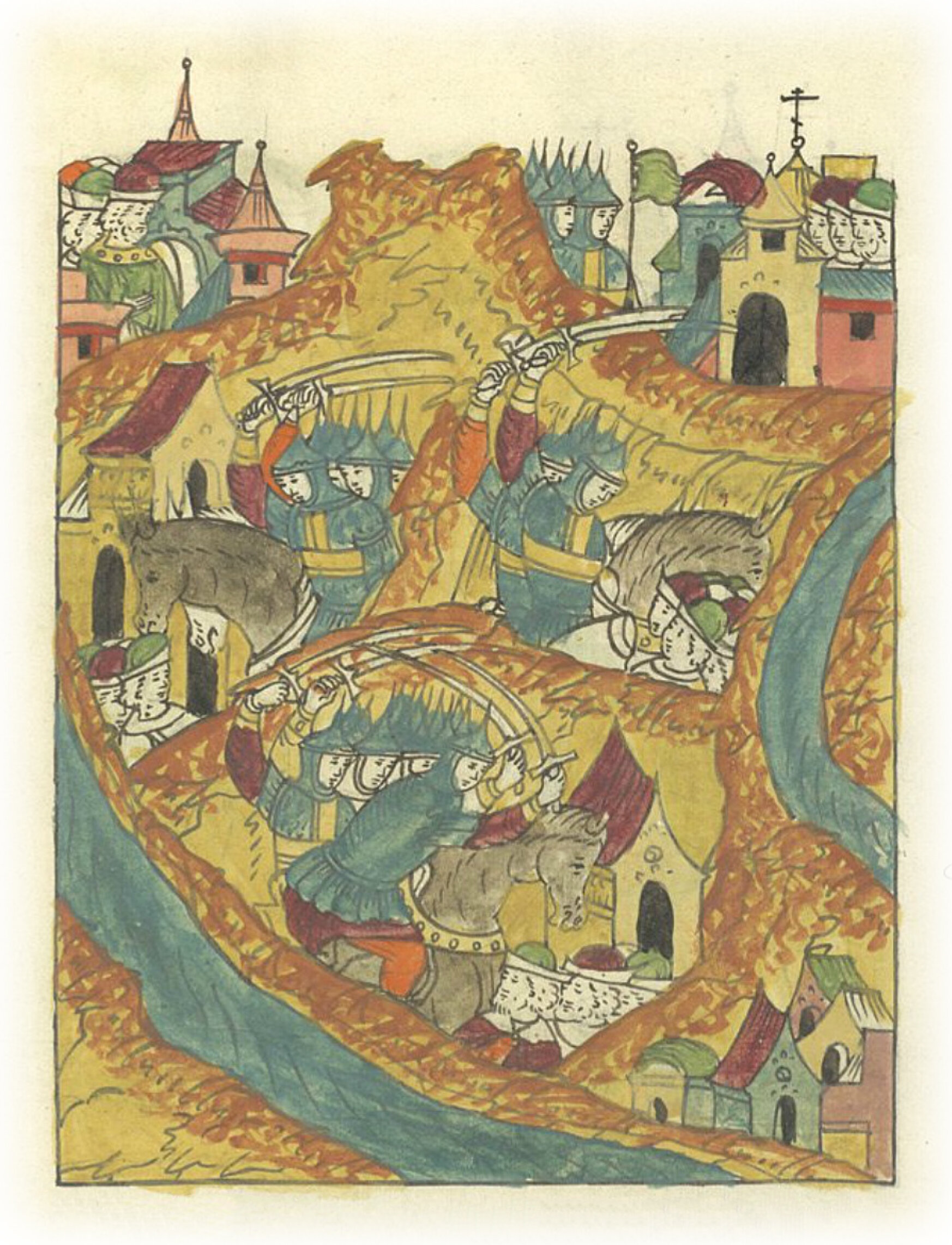 Приход Крымского царя Девлет-Гирея к Рязани. Люди Крымского царя воюют между Пронском и Рязанью по реке Воже, до реки Оки и села Кузьминского.